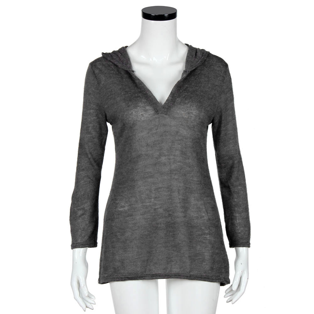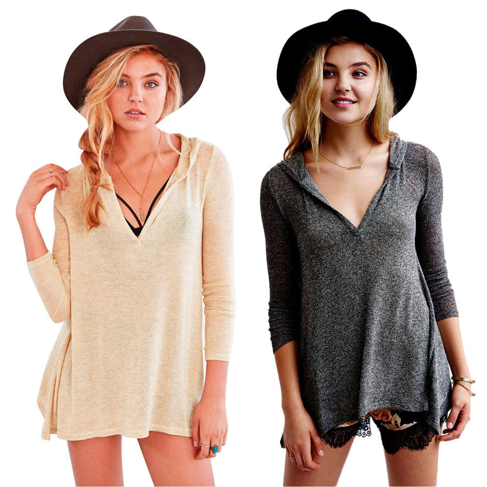 Hollow Out T-Shirt Women Baggy Fit V Neck Hooded Knitwear Pullover Sexy Womens Tops Tee Shirt Femme Camisetas Mujer IMY66