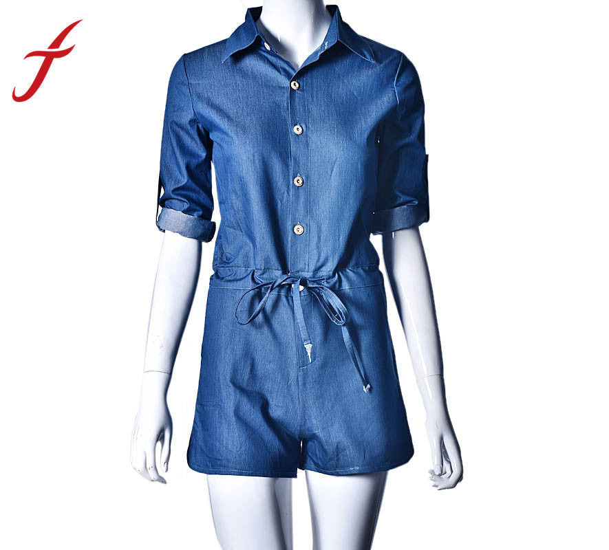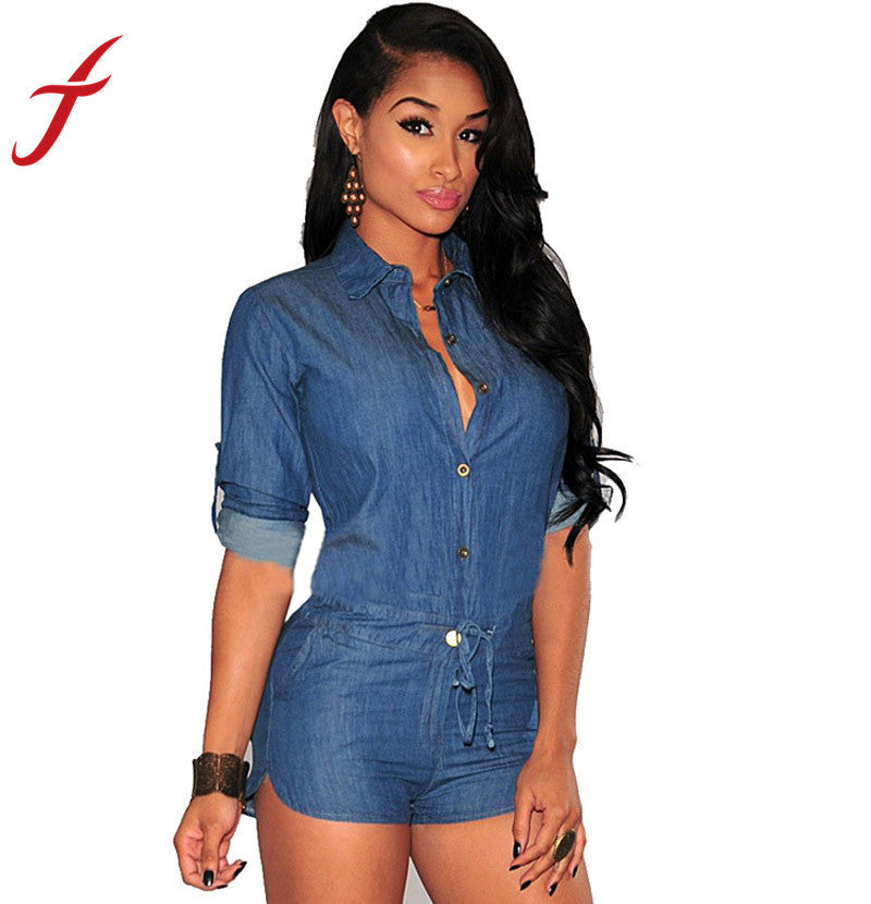Jeans Jumpsuit Romper Women Short Bodycon Denim Jumpsuits Style V Neck Long Sleeve Sexy Club Wear Jumpsuits IMY66