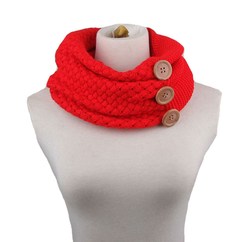 Keep Warm Scarf Two Circle 3 Buttons Knitting Wool Collar Cowl Neck Ring Scarf Shawl For Women IMY66