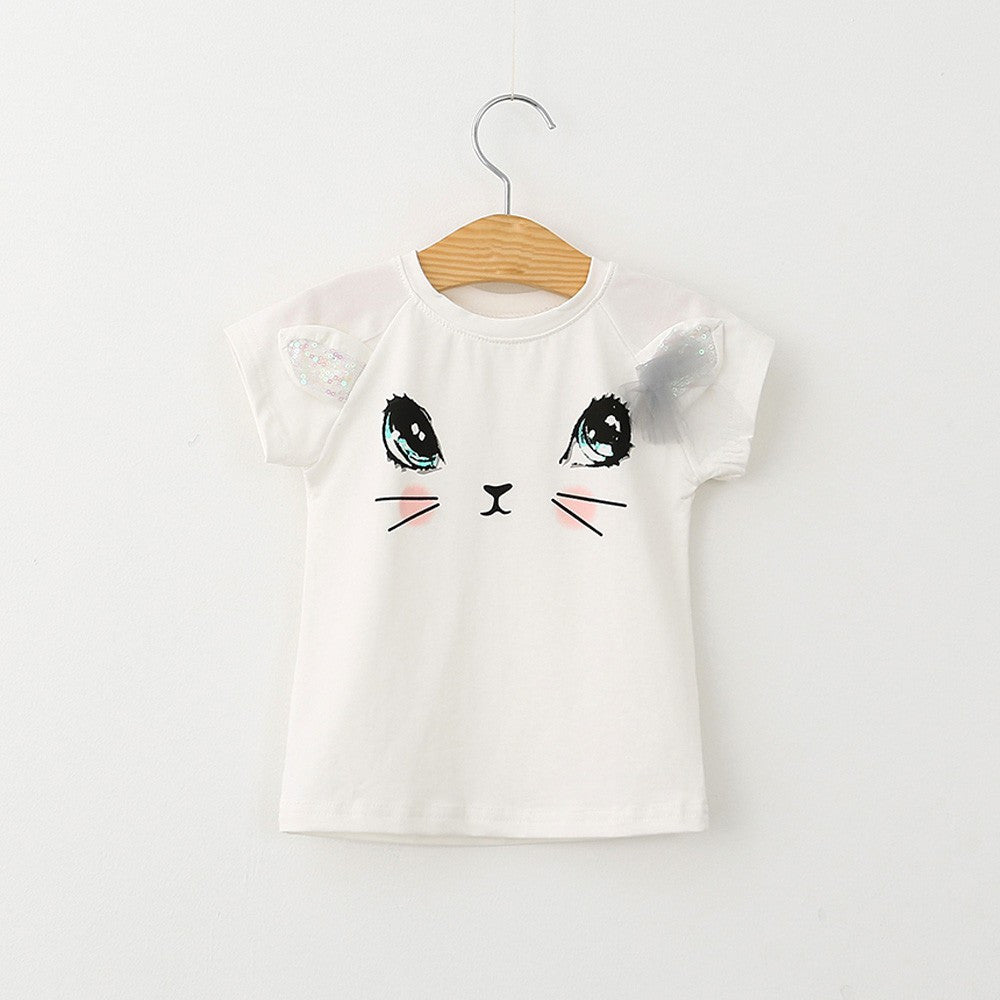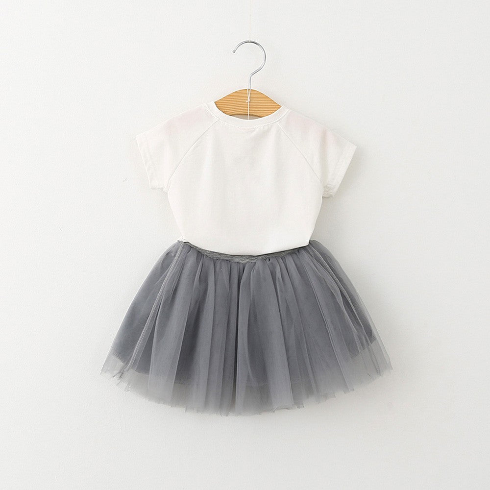 Kids Baby Girls Clothing Set Littler Cat Kids Clothes Short Sleeve Cartoon T-shirt+Butterfly Veil Skirt IMY66
