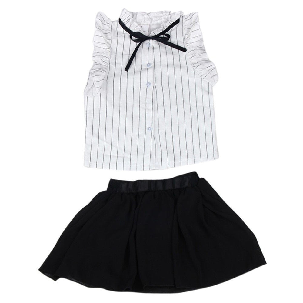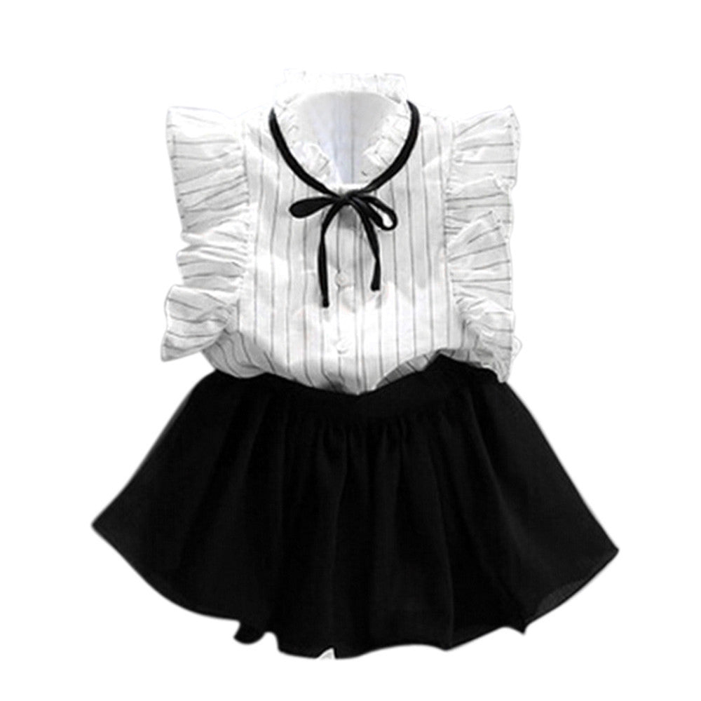 Kids Baby Girls Princess Stripe Shirt Chiffon Culottes Skirt Two Pieces Set Clothes Skirt Suit Girls Clothing Set IMY66