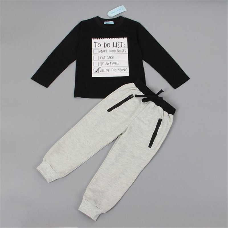 Kids Toddler Boys Handsome Letter Print Black Tops Tee Shirts+Gray Casual Pants Set children clothing IMY66