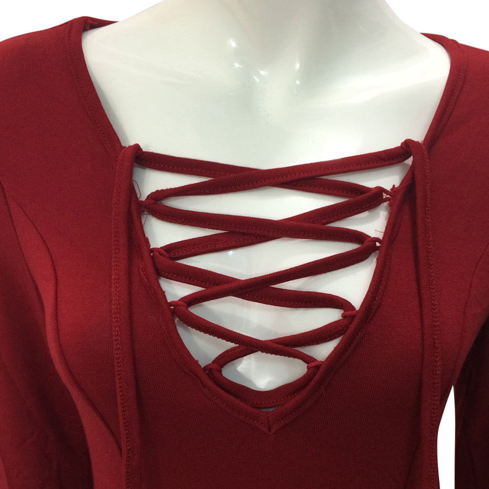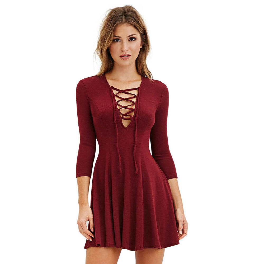Lace Up Dress Women Sexy V Neck Three Quarter Sleeve Dress Evening Party Mini Dress vestidos de festa IMY66