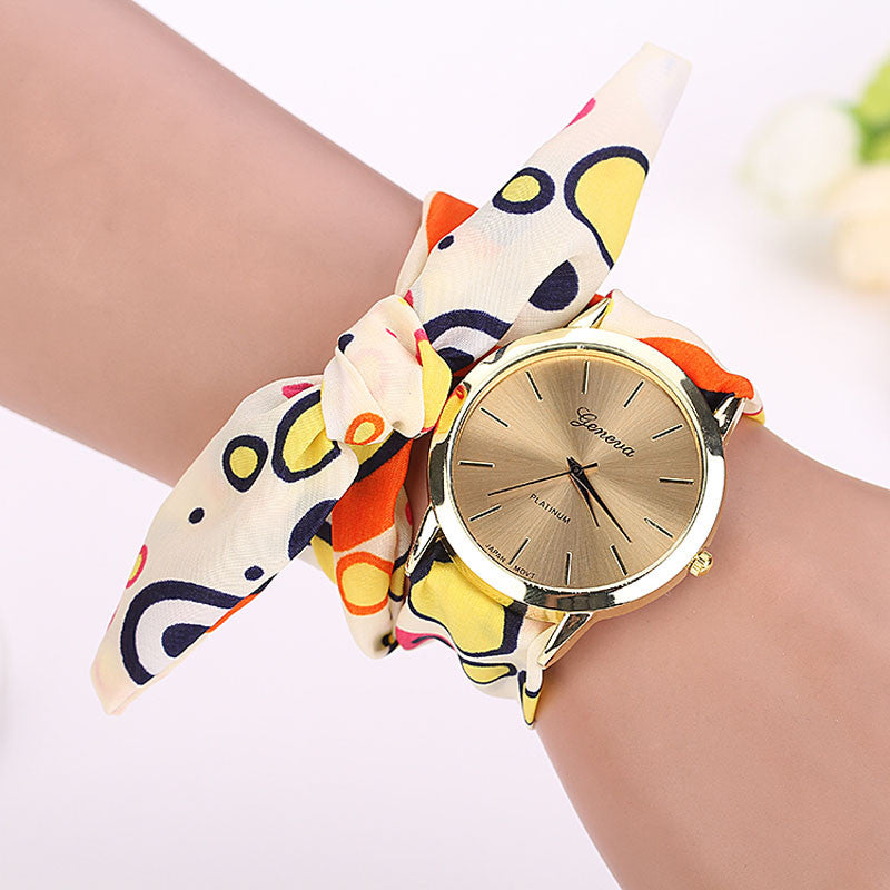 Ladies Stripe Floral Cloth wrist watch women dress watch fabric watch sweet girls watch IMY66