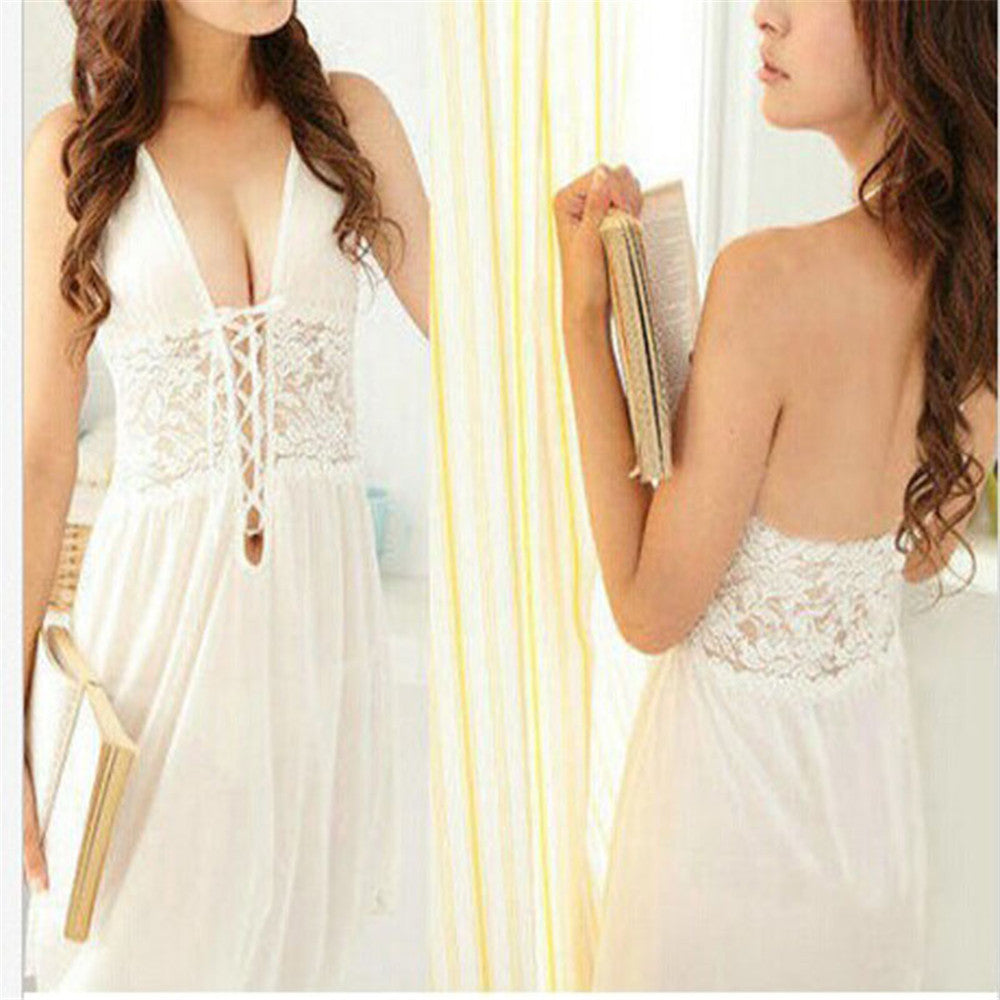lenceria erotica Sexy Costumes Lingerie Women White Lace Bandage Nightwear Babydoll Sleepwear Underwear Dress G-String IMY66