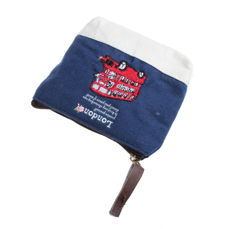 London Bus Embroidered Admission Package Canvas Coin Purse Hand Bag For Best IMY66