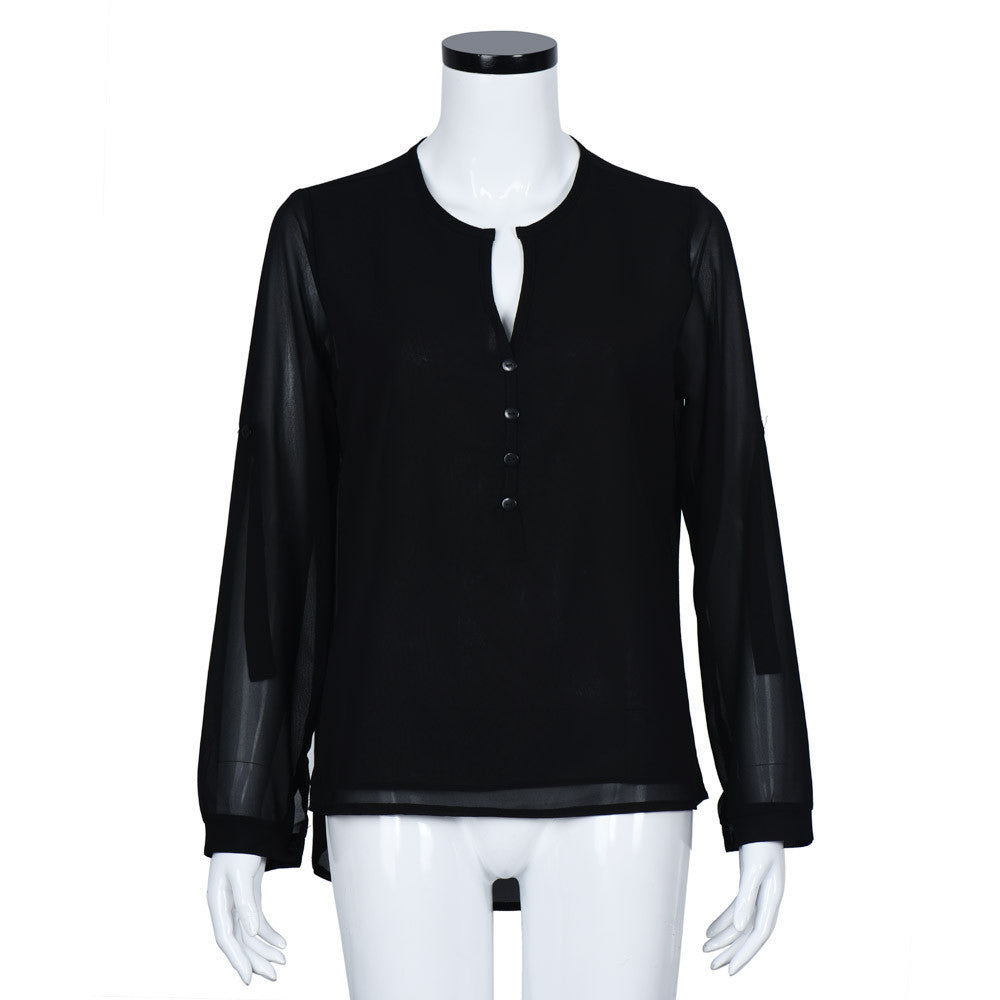 Long Sleeve Chiffon Blouse Shirt Women Casual V Neck Button Blouses Tops Loose Sexy Lady Shirt blusas femininas IMY66