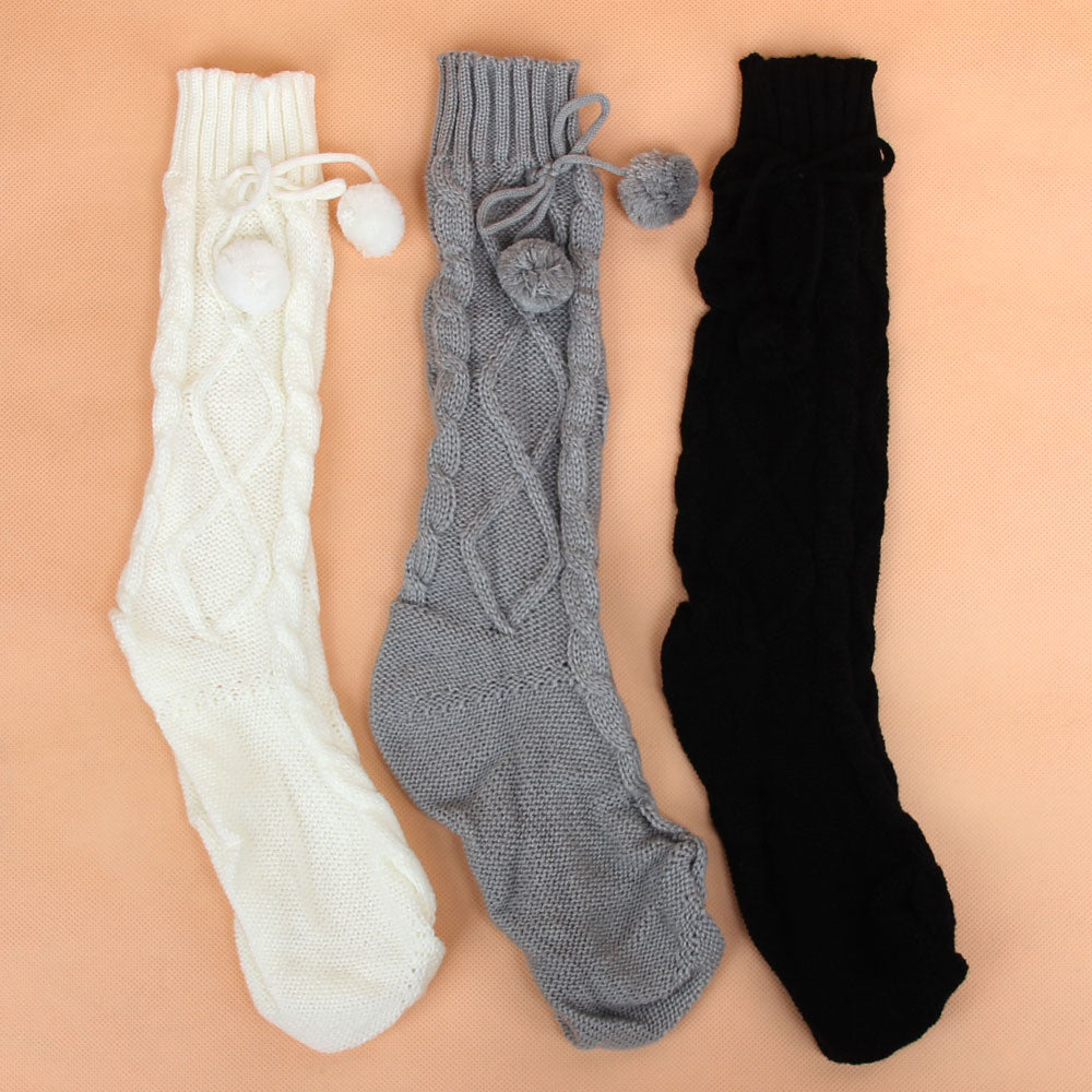 Lovely Warm Over Knee Socking For Women Knitted Long Boot Socks Thigh High Stocking With Balls Female stockings IMY66