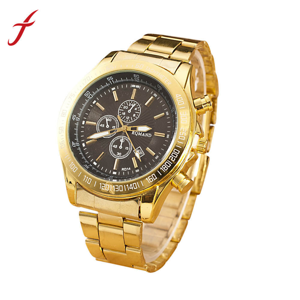 Men Stainless Steel Watch Luxury Gold Plated Three Eyes Analog Quartz Movement Wrist Watches IMY66