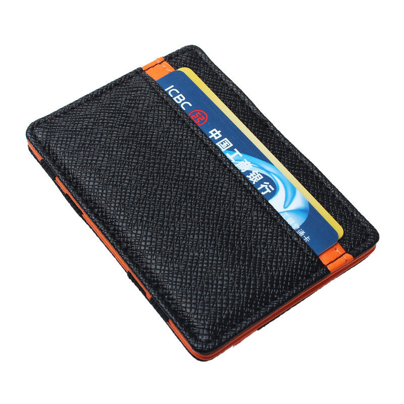 Mens transverse Faux Leather Magic Pas Cover Credit Card Money Holder Clip Wallet IMY66