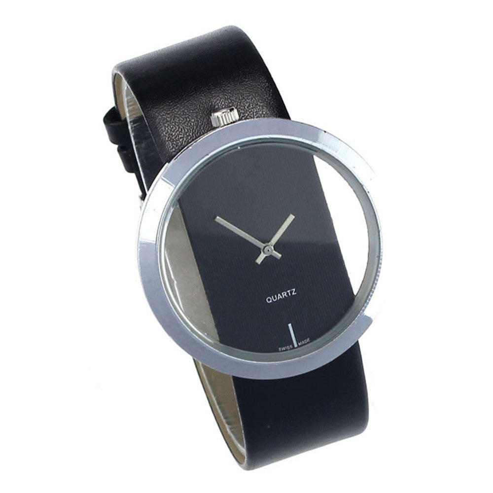 Men's Women PU Leather Watch Simple Big Dial Transparent Hollow Quartz Wrist Watch relogio masculino Relogio Feminino IMY66