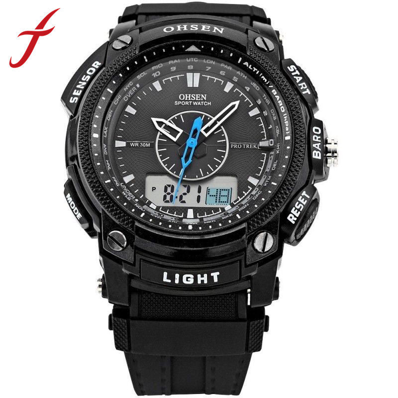 OHSEN Alarm Date Mens Military Rubber Strap LCD Digital LCD Wrist Watch Clock Hours Relogio masculinos IMY66