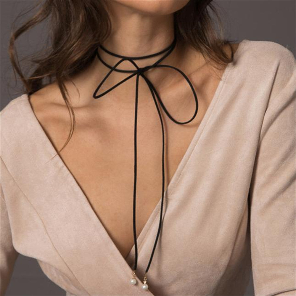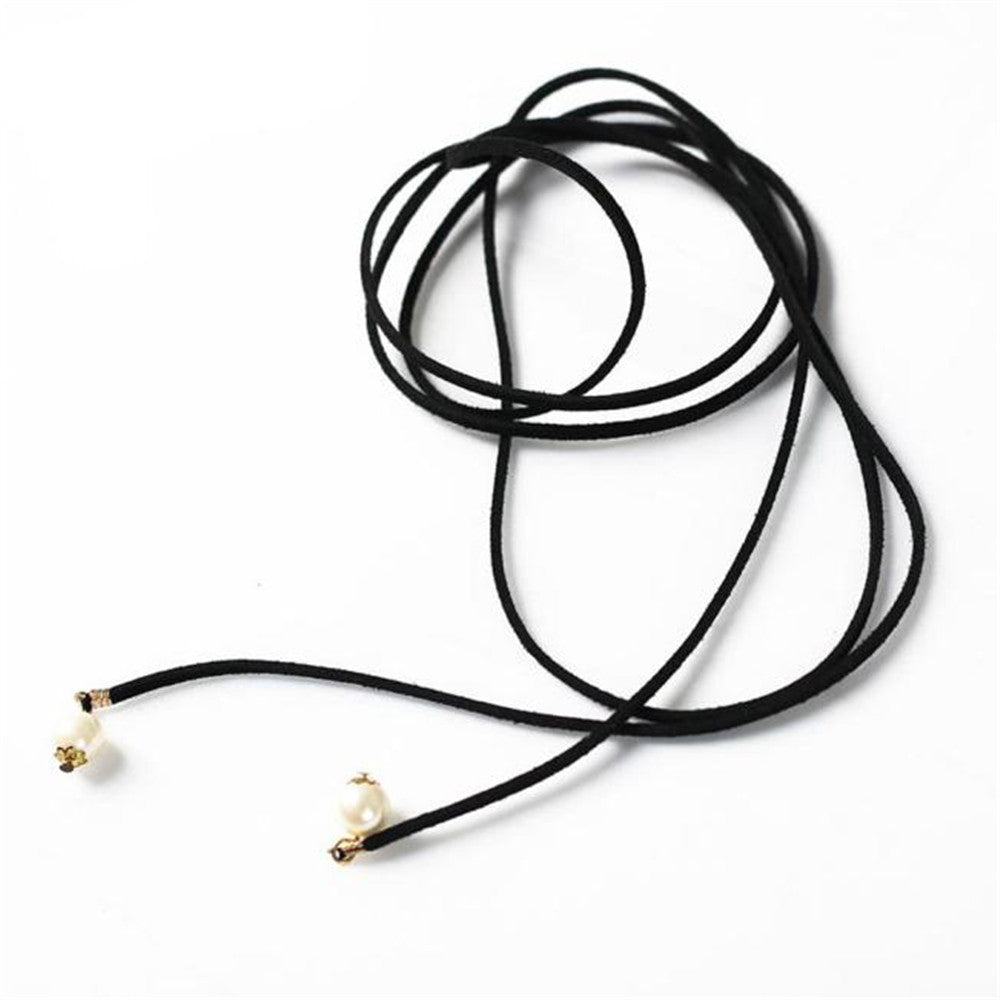 Pearl Long Black Suede Leather Rope Tube Choker Collar Necklace Women Collier Bijoux Chain Jewelry Accessories IMY66