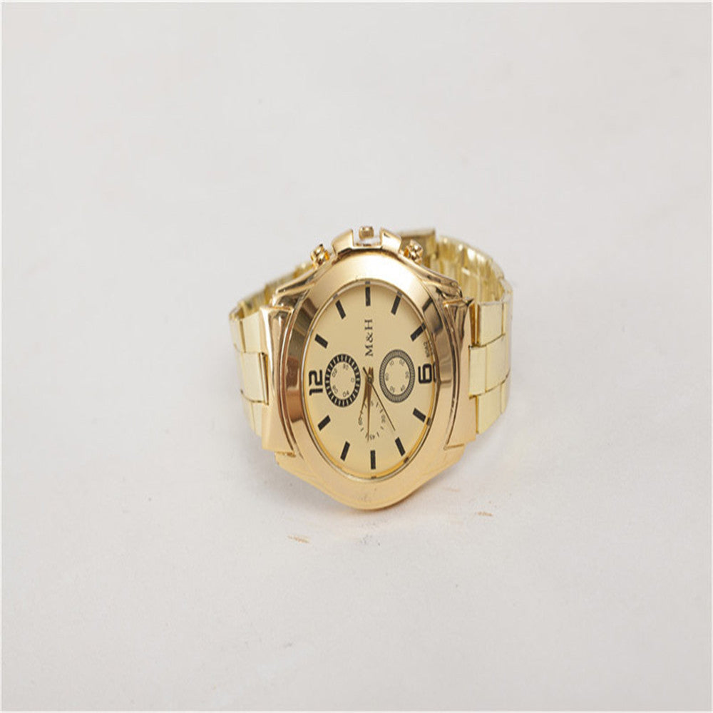 relojes hombre Luxury Men Watch Stainless Steel Wrist Gold Bracelet Quartz Big Dial Watch relogio masculino IMY66