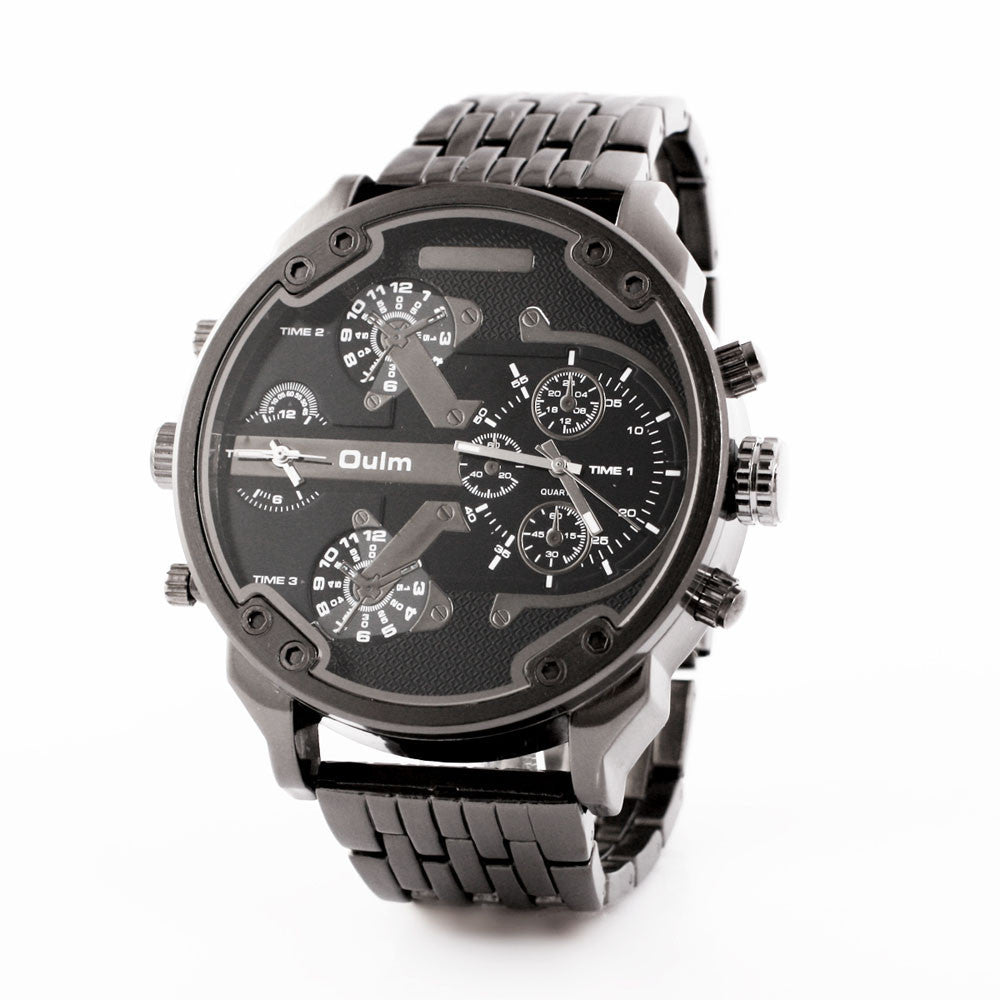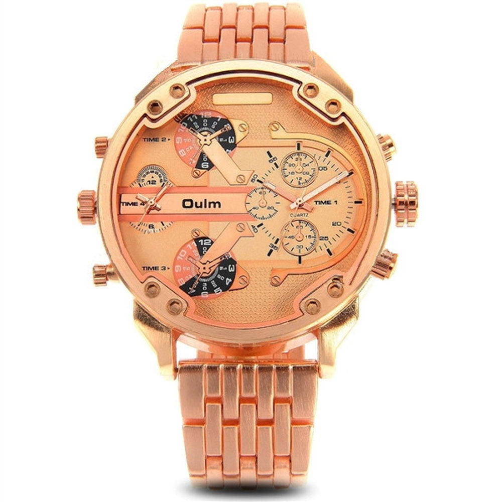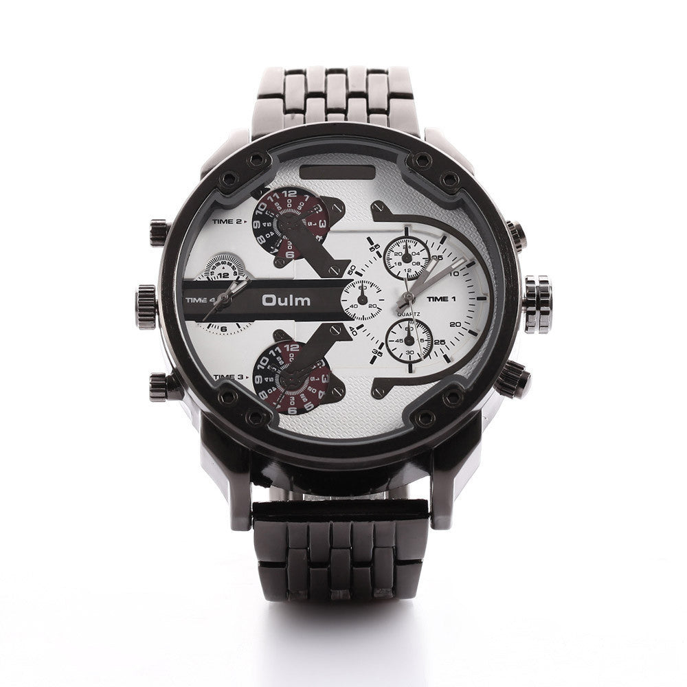 Resuli Luxury Dual Time Large Dial Stainless steel Quartz Wrist Watch IMY66