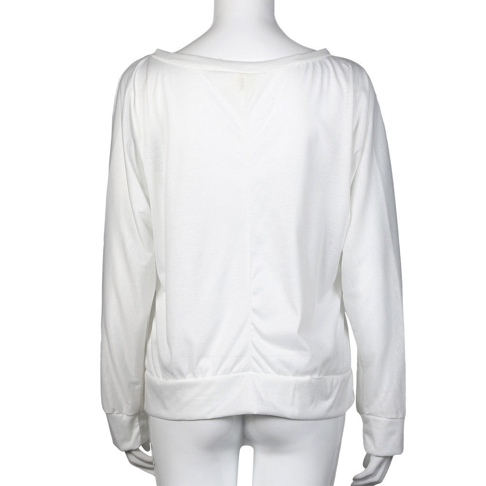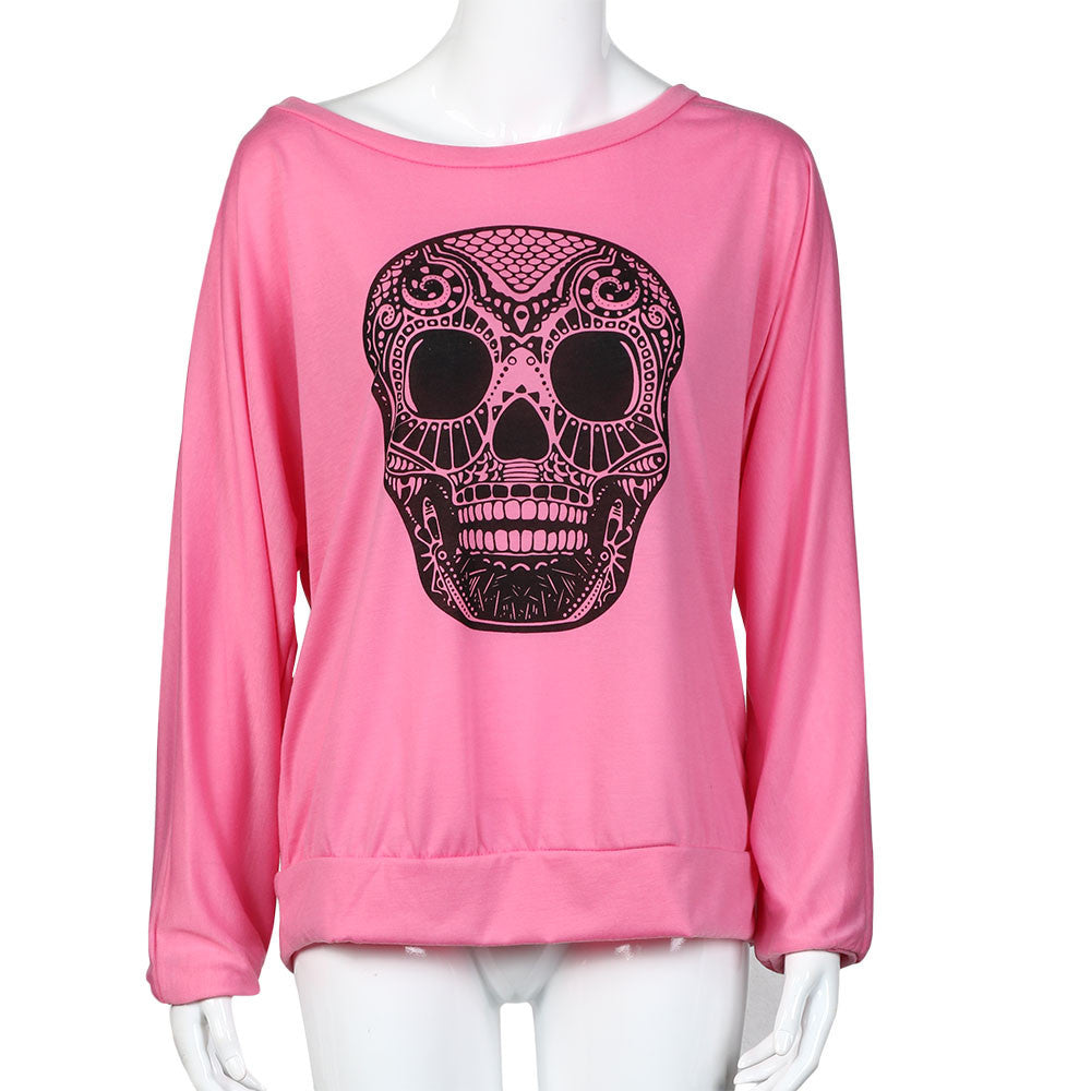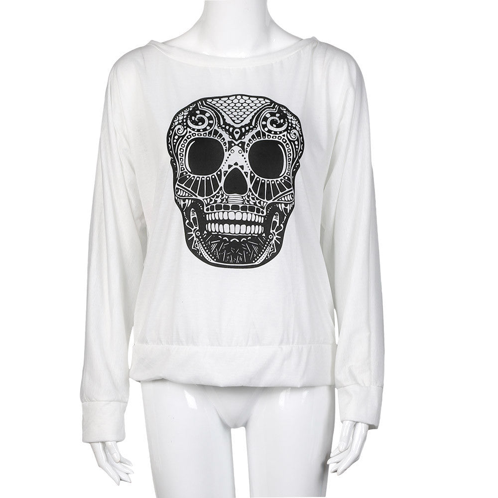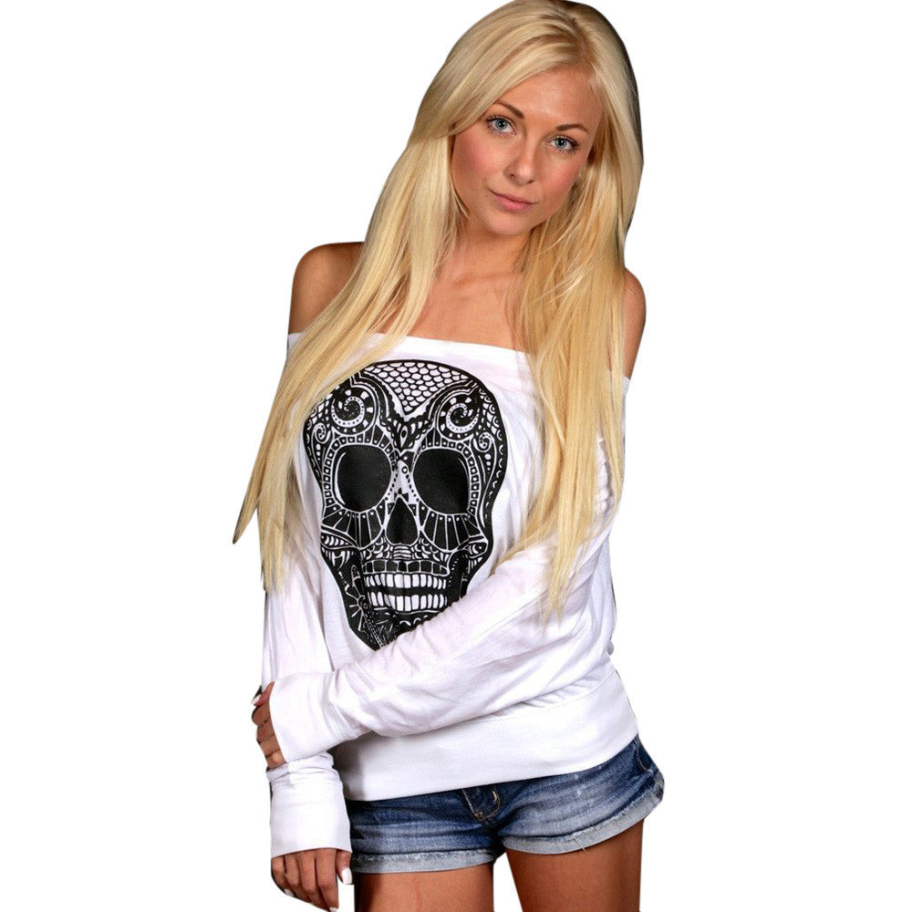 Rock Punk Women T-Shirts Casual Loose Skull Printing Off The Shoulder Long-sleeved T-shirt Tops camisetas y tops IMY66