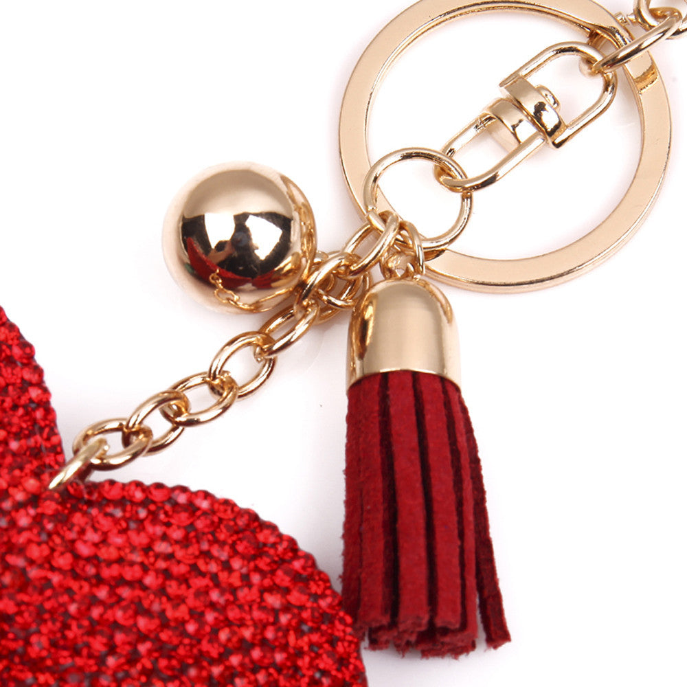 Romantic Women Key Chain Love Heart Pendant Leather tassel Rhinestone crystal Key chain key rings For Bag IMY66