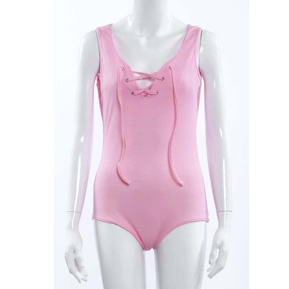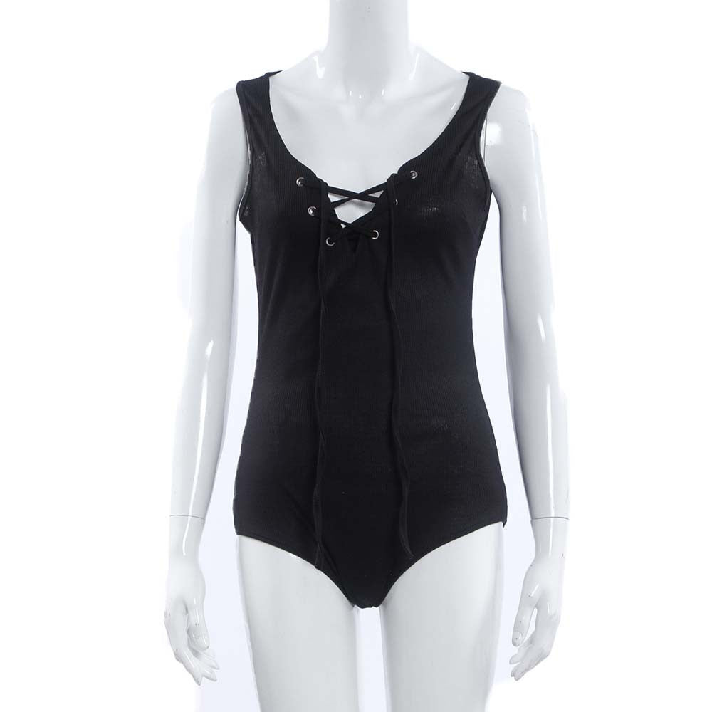 Romper Women Jumpsuit Sexy Deep V Neck Lace Up Bodycon Sleeveless Playsuit Metal Bodysuit Macacao Feminino Overall IMY66