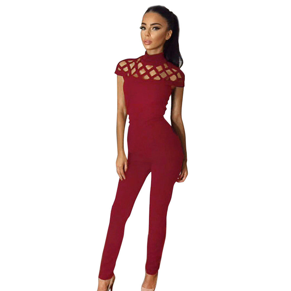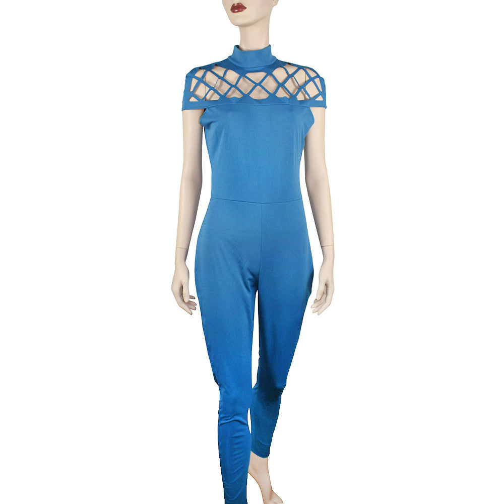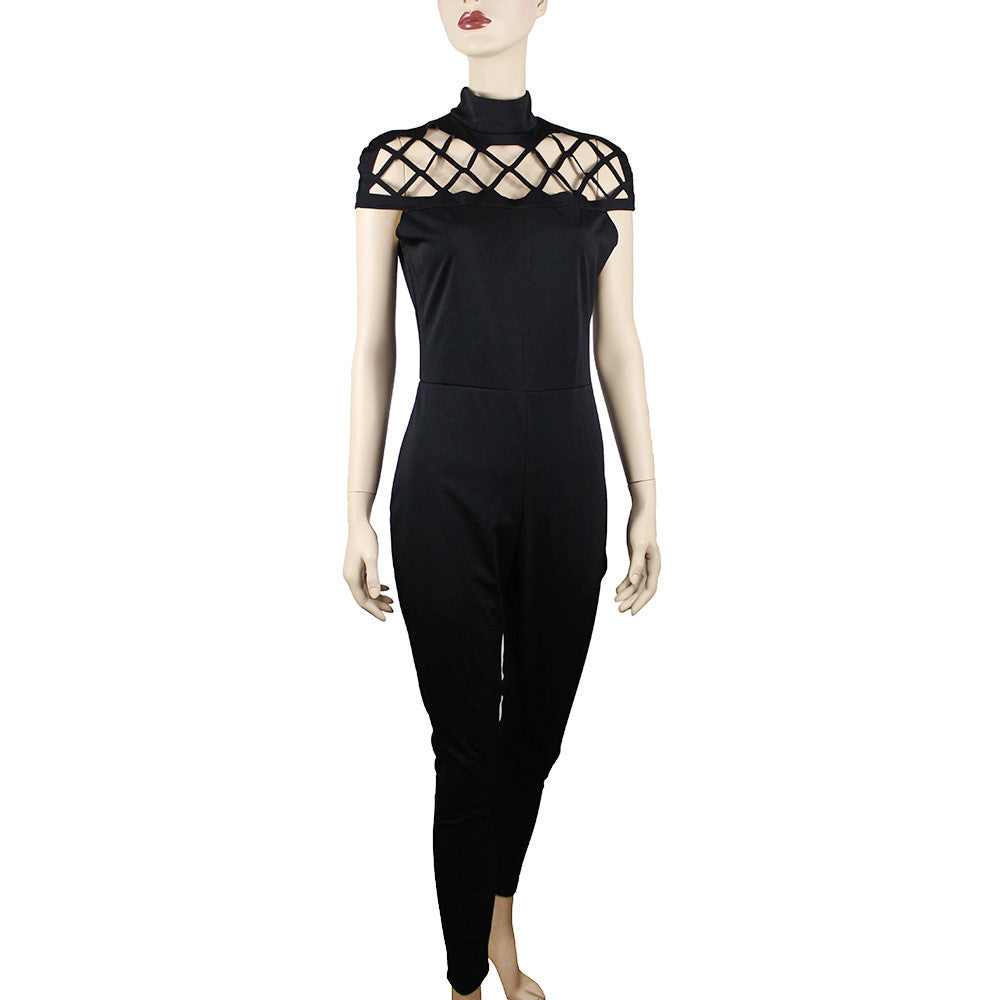 Rompers Womens Jumpsuit Choker Turtleneck Hollow Caged Sleeve Playsuits Long Overalls For Women macacao feminino longo IMY66