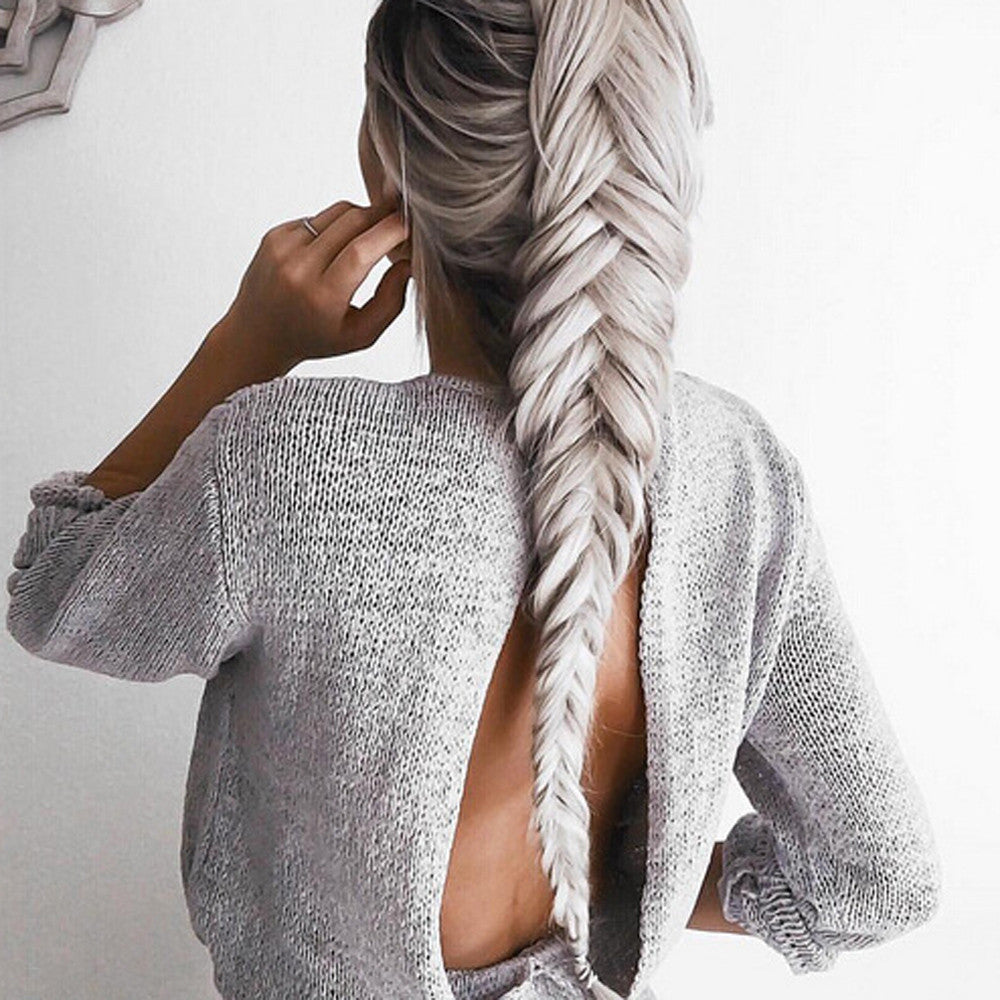 Sexy Backless Dress Knitted Sweater Dress Casual Long Sleeve Loose Mini Dress Vestidos Femininos IMY66