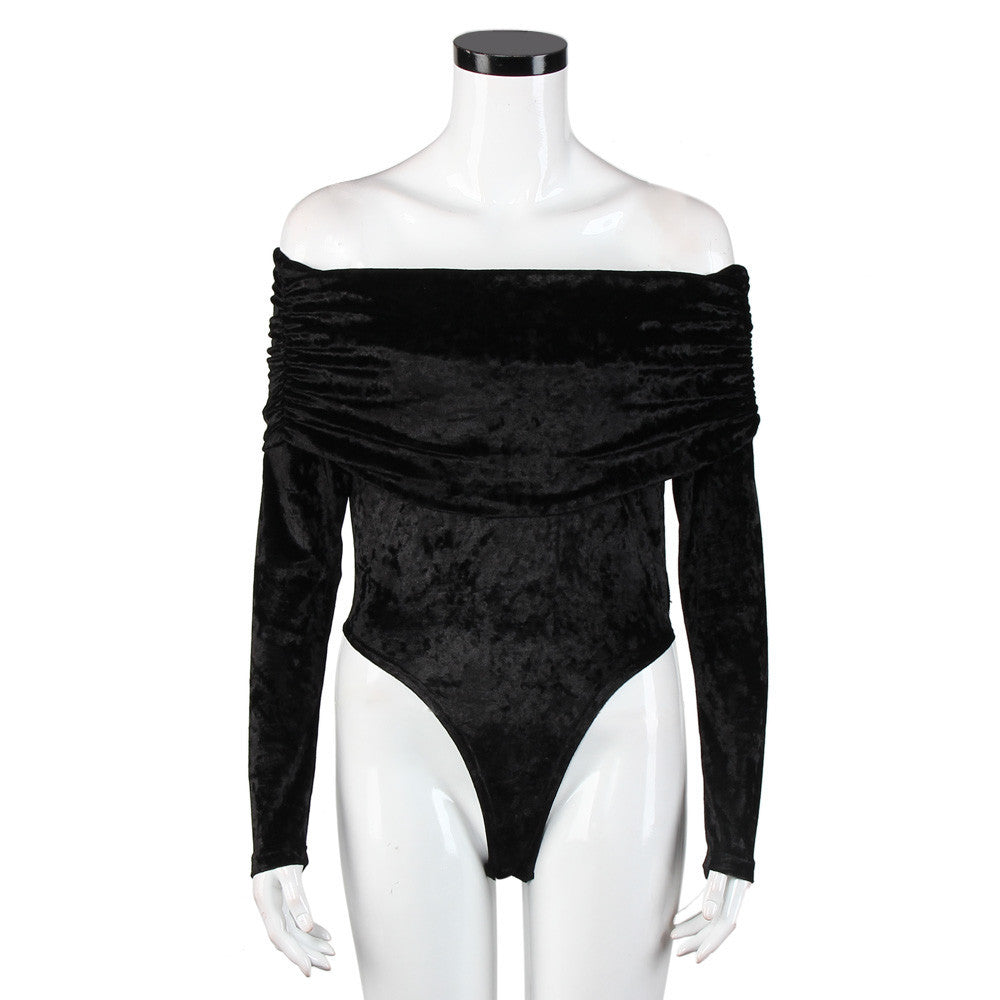 Sexy Bodysuit Solid Velvet Keep Warm Long Sleeve Slash Neck Sexy Off Shoulder Rompers Womens Tees IMY66