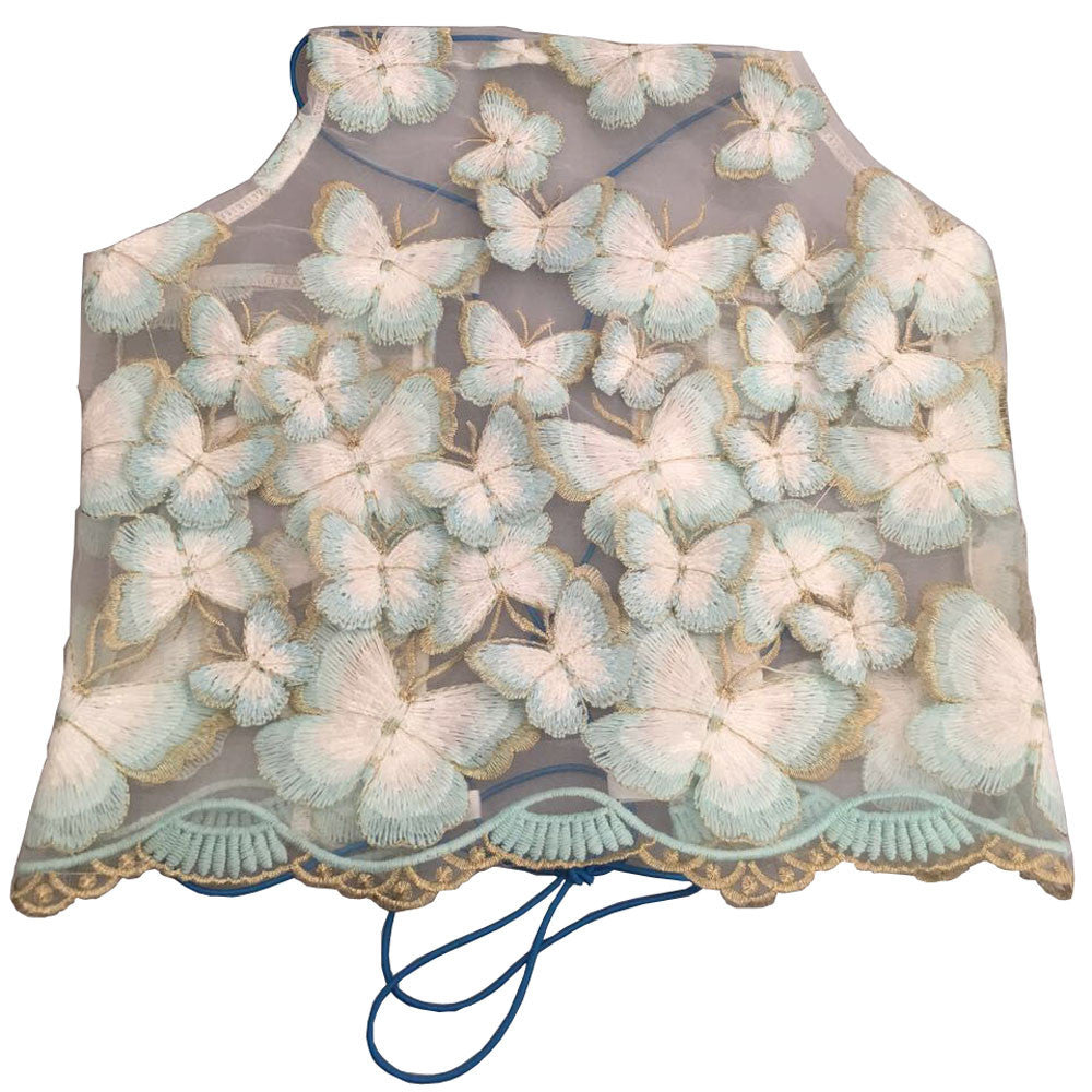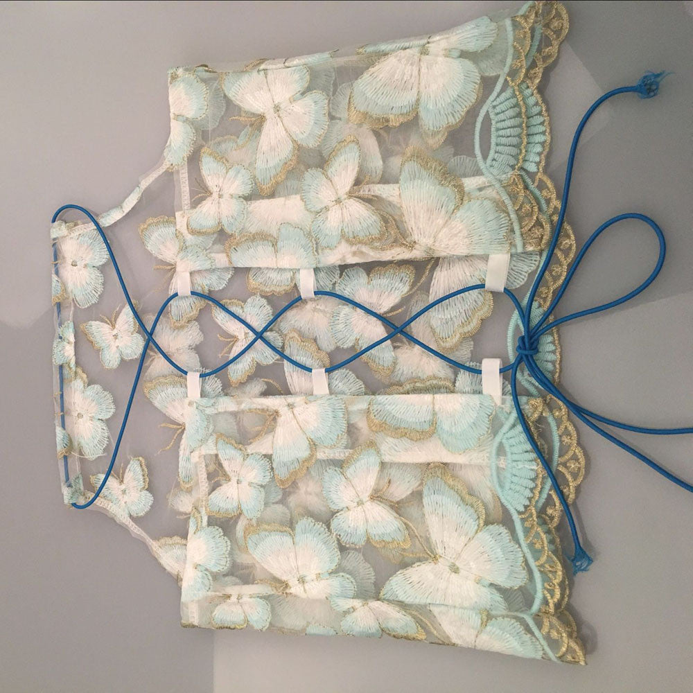 Sexy Halter Transparent Bustier Crop Tops Women Lace up Backless Tank Tops Elegant Gauze Sequin 3d Butterfly Club Camis IMY66