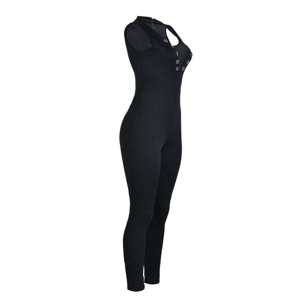 Sexy Lace Up Deep V Neck Jumpsuit Women Sleeveless Backless Bandage Bodycon Sleeveless Playsuit Tee Shirt IMY66