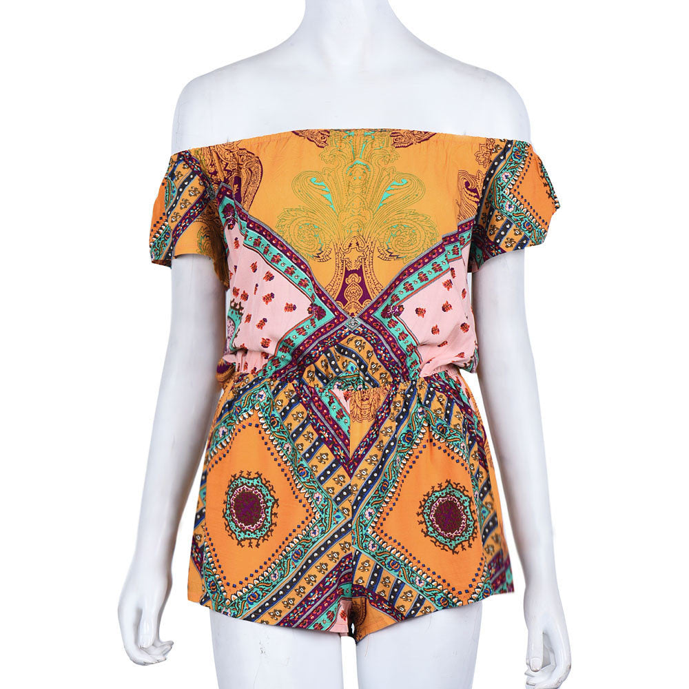 Sexy Off Shoulder Jumpsuit Women Boho Bohemia Classical Printed Beach Rompers Playsuit macacao feminino IMY66