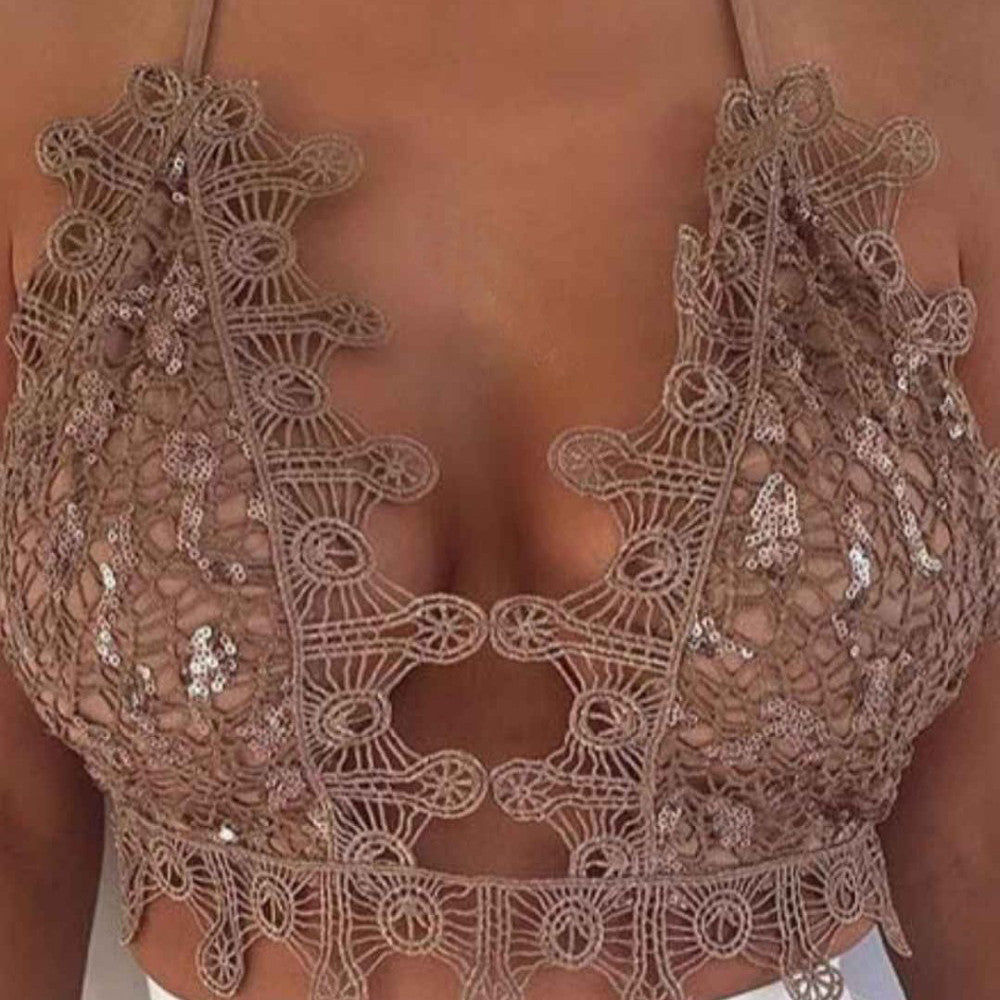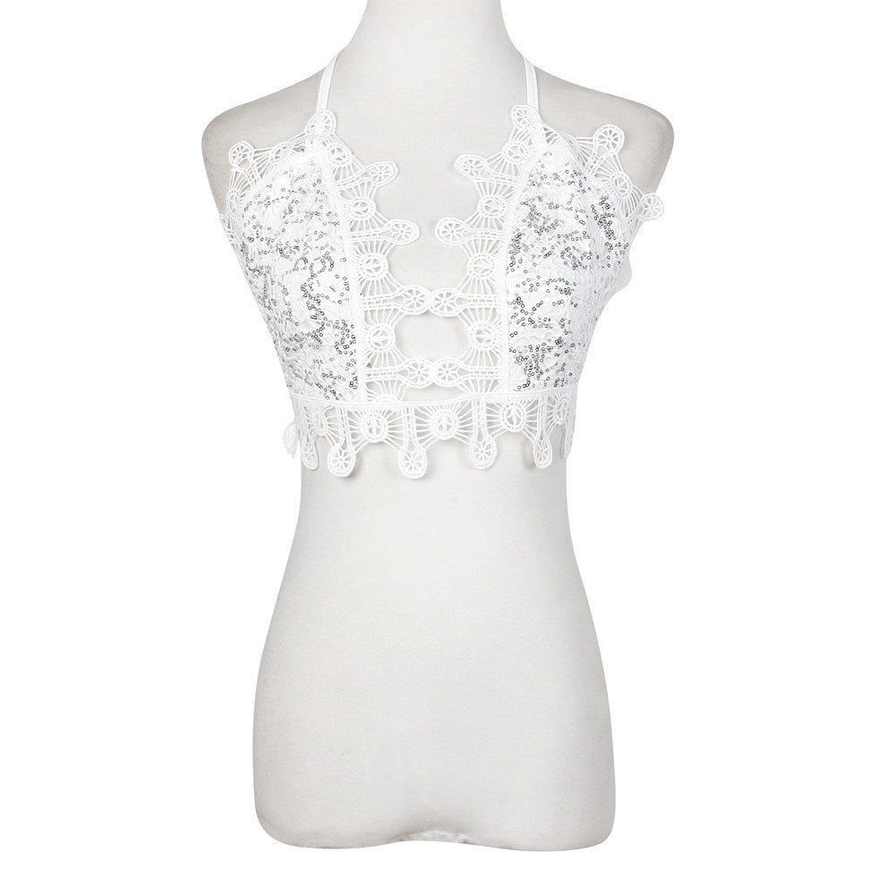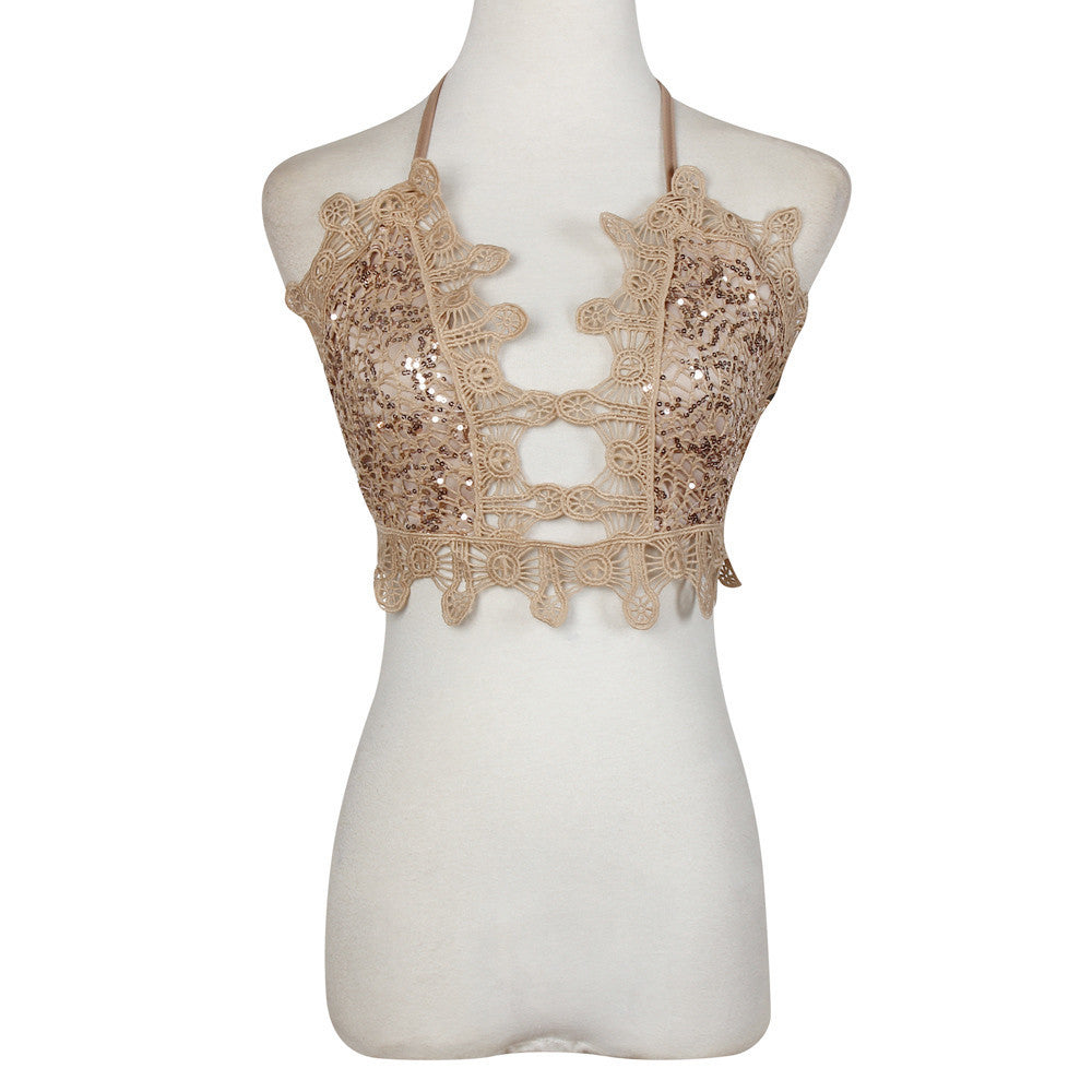 Sexy Sequin Crops Tops For Women Backless Party Tops Club Floral Lace Tops Bustier Beach Crop Tops Strappy Bra IMY66