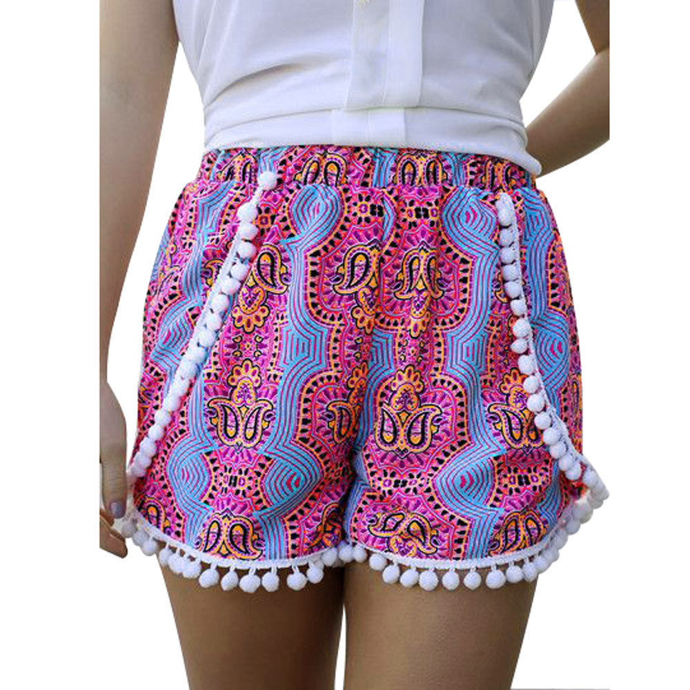 Sexy Shorts Women With High Waist Elastic Tassel Print Short Casual Ball Pom Pom Beach Short femme Feminino IMY66