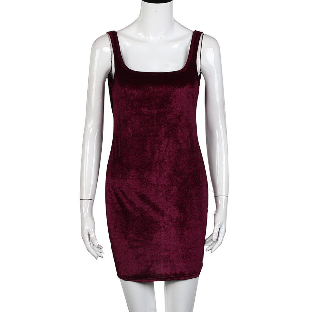 Sexy Velvet Dress For Women Solid Ladies Backless Sleeveless Short Evening Party Mini Dress Vestidos femininos IMY66