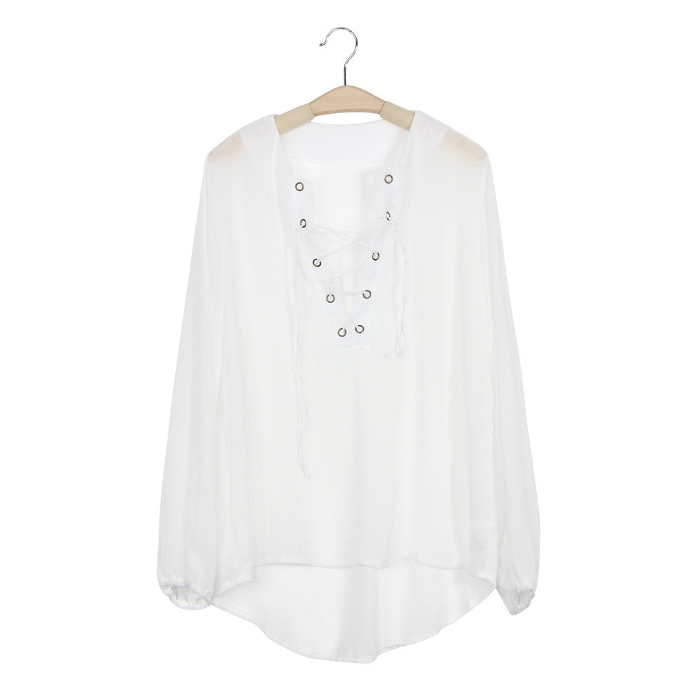 Sexy Women Chiffon BlouseS Loose Lace Up Bandage Long Sleeve Tops Shirt Blouse Cover Up Blusas feminina IMY66