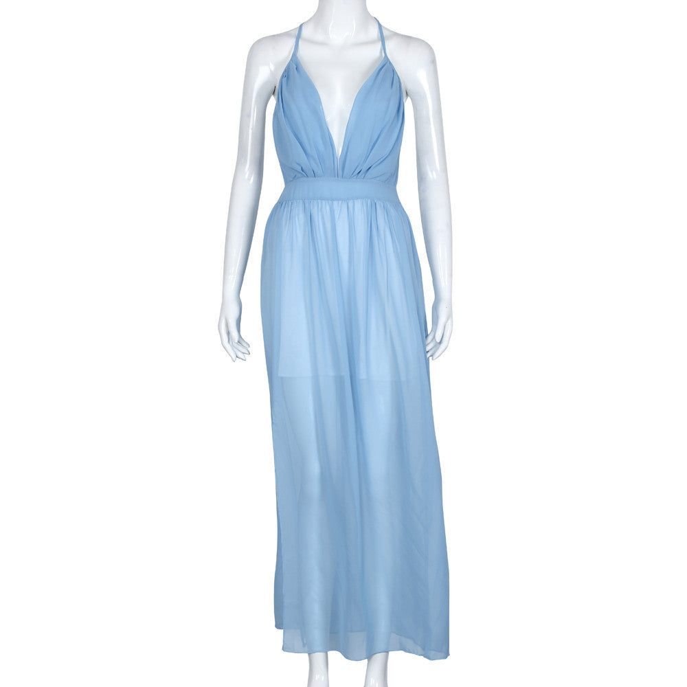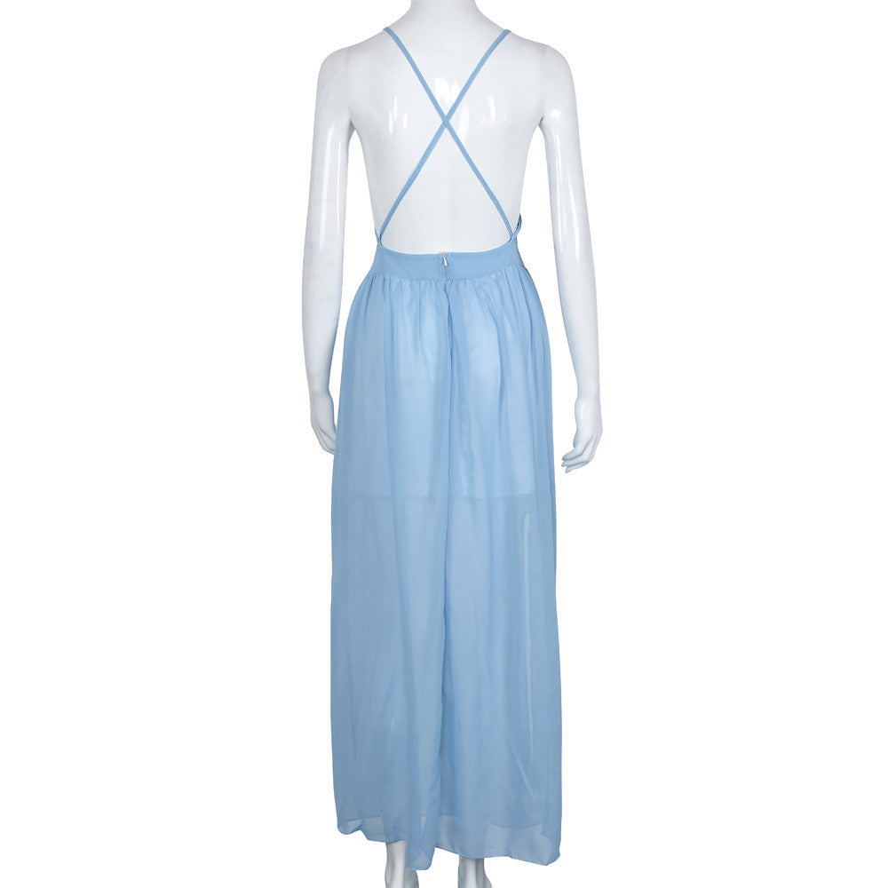 Sexy Women Chiffon Dress Strap Deep V Neck Sleeveless Boho Long Maxi Evening Party Beach Dress vestidos femininos IMY66