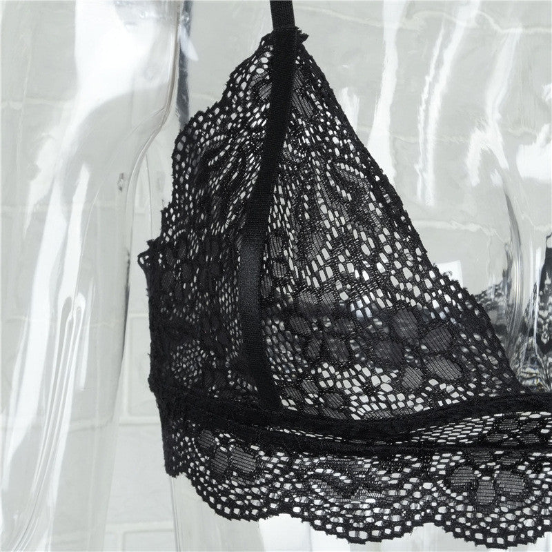 Sexy Women Crop Tops Bralette Tops Lace Floral Sheer Triangle Short Halter Tank Tops Vest Strappy Bra Lingerie IMY66