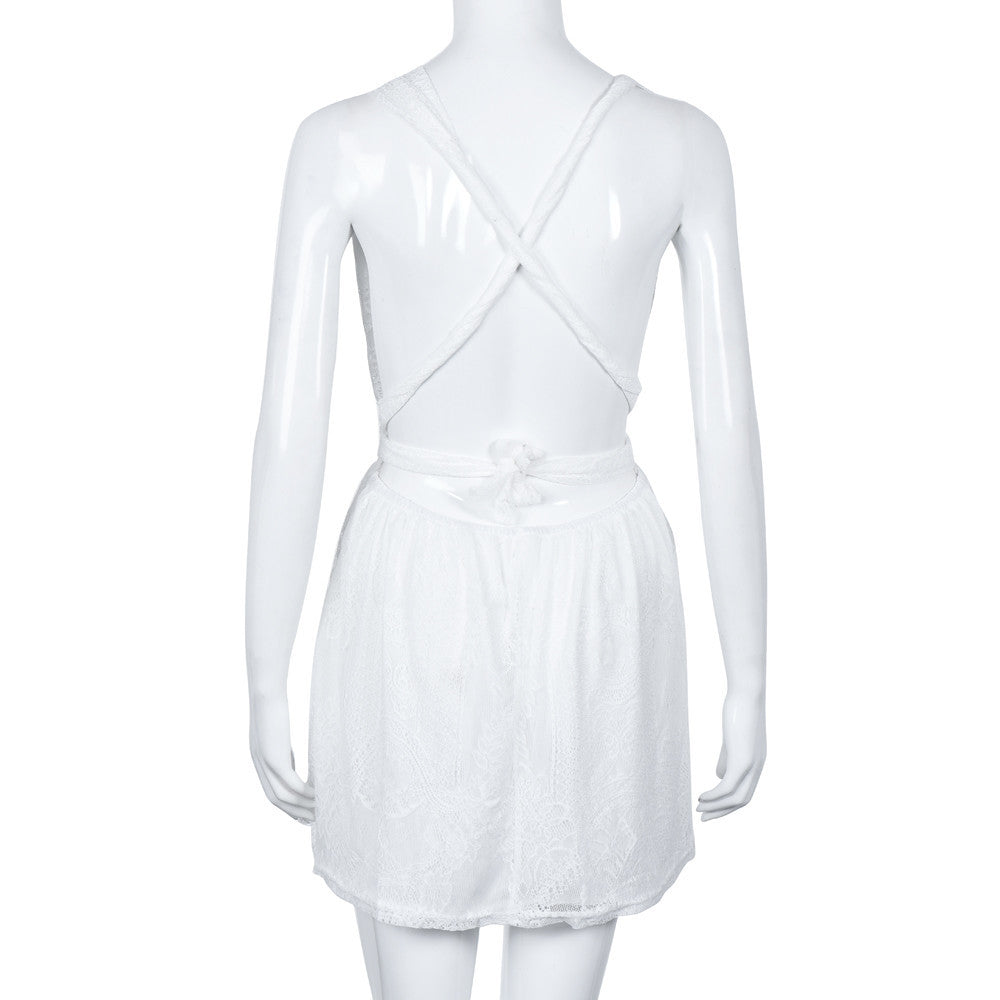 Sexy Women Lace Dress Bodycon Bandage Backless Cross Party Evening Short Dress Vestidos Femininos IMY66