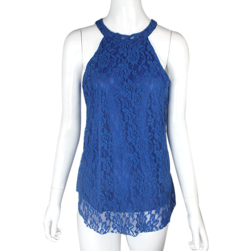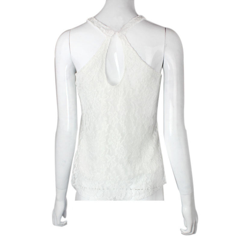 Sexy Women Lace Tops Casual Sleeveless Shirt Lace Hollow Loose Vest Top Blouse blusas feminina White IMY66