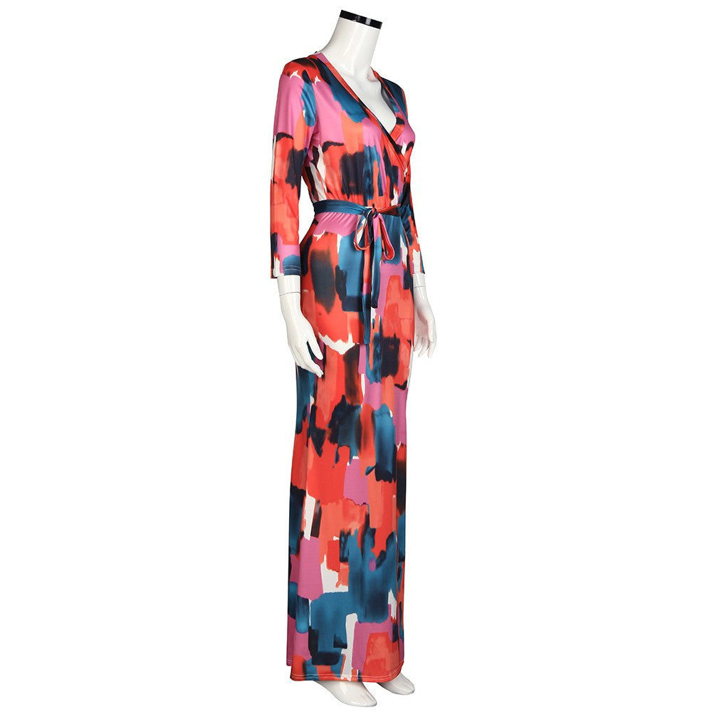 Sexy Women Long Dress Floral Print Package Dress Casual V-neck Long Sleeve Bodycon Maxi Dresses Vestido Feminino IMY66