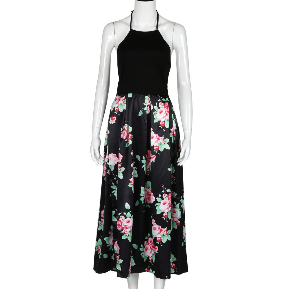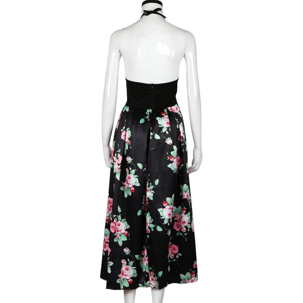 Sexy Women Long Dress Floral Printed Halterneck Sleeveless Party Evening Beach Maxi Dress vestidos feminino IMY66