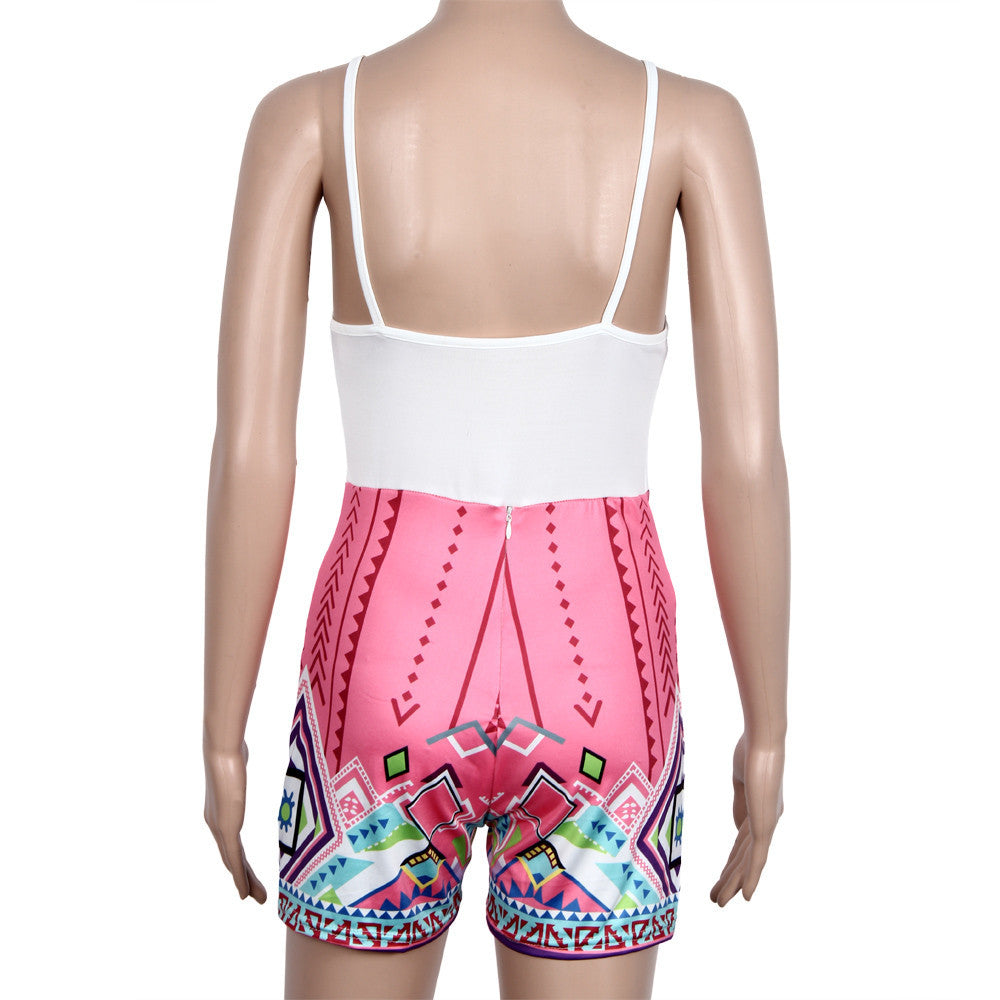 Sexy Women Printed Floral Jumpsuit Strap Clubwear Bodycon Mini Shorts Rompers Bodysuit macacao feminino IMY66