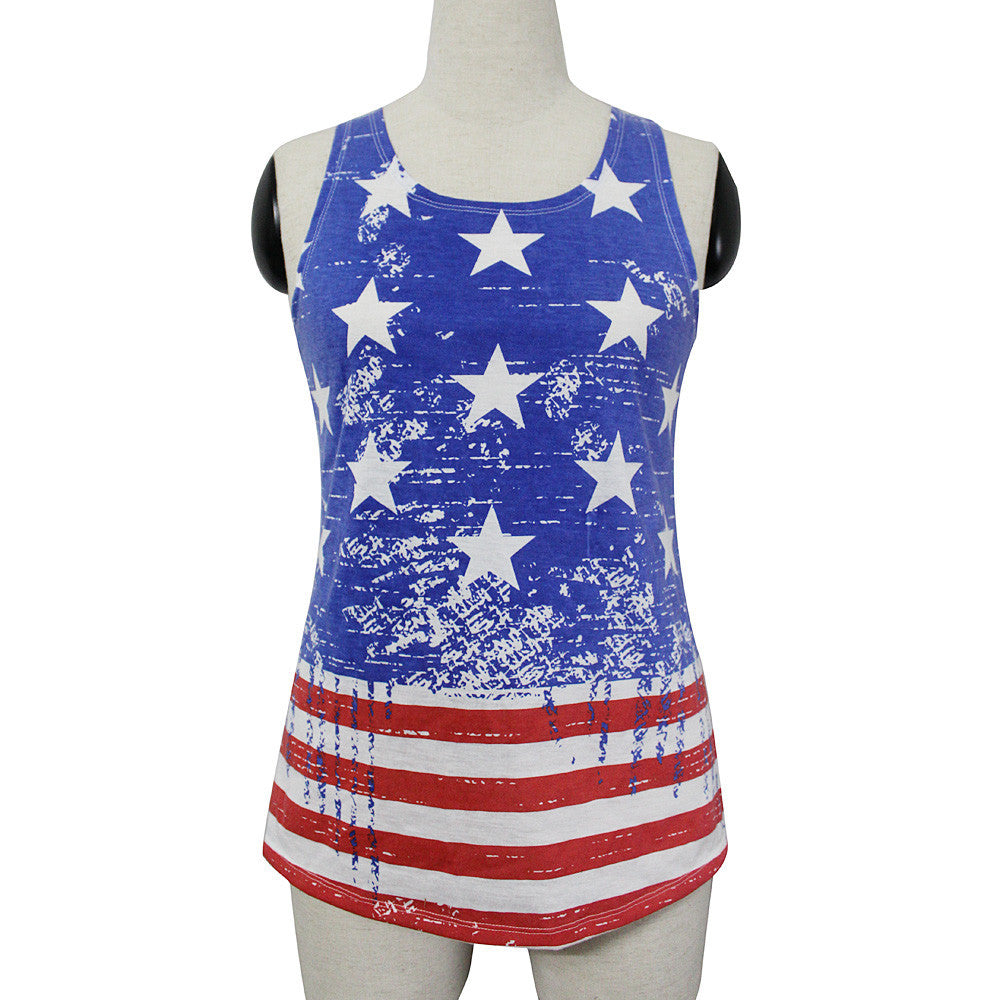 Sexy Women Sleeveless Tops American USA Flag Print Stripes Tank Top for Woman Blouse VesT-Shirt Women Clothing IMY66