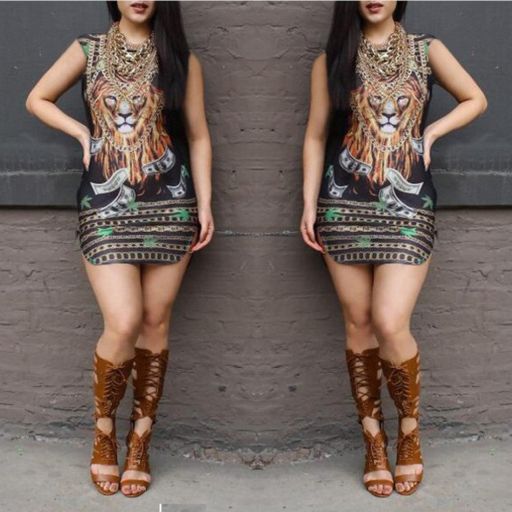 Sexy Women Vest Dress Boho 3D Lion Print Sleeveless Party Beach Mini Dress Sundresses Vestidos femininos IMY66