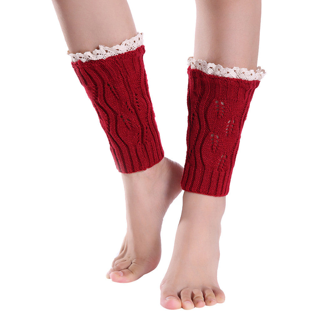Short Knitting Hollow Out Lace Crochet Socks Leg Warmers Boot Cover piernas calcetines mujer IMY66