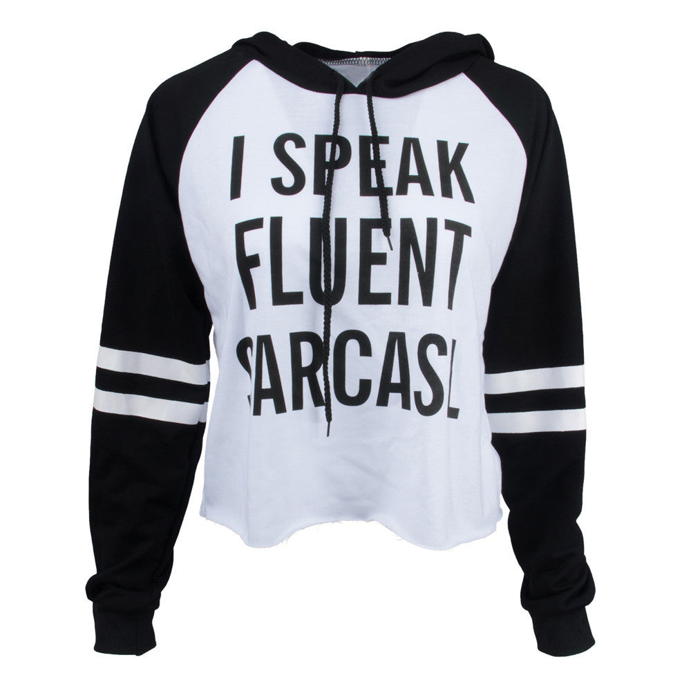 Short Sweatshirt Crop Tops For Womens Casual Long Sleeve Hooded Letter Printed Hedging Hoodies camisetas y tops IMY66