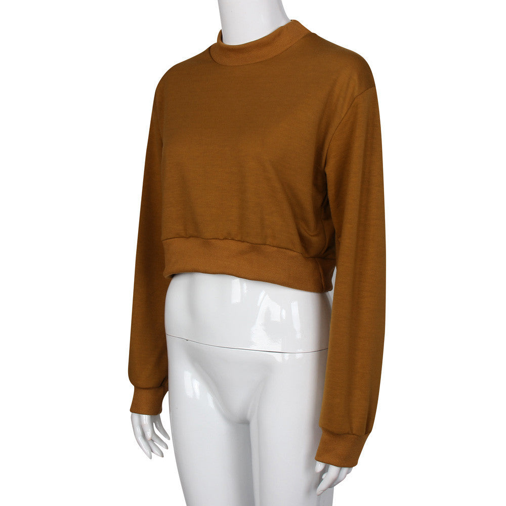 Solid Womens Long Sleeve Sweatshirt Jumper Sweater Crop Tops Pullover Tops Hoodie Tee Shirts camisas feminina IMY66