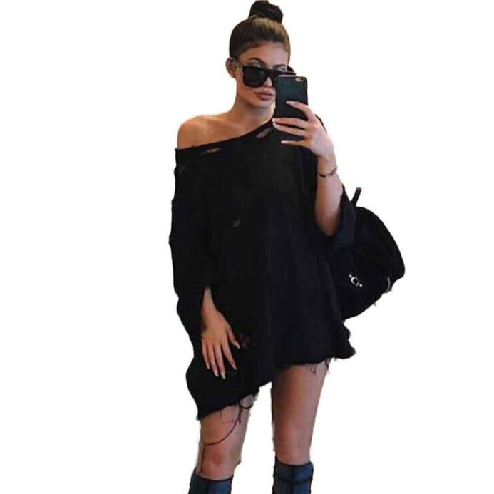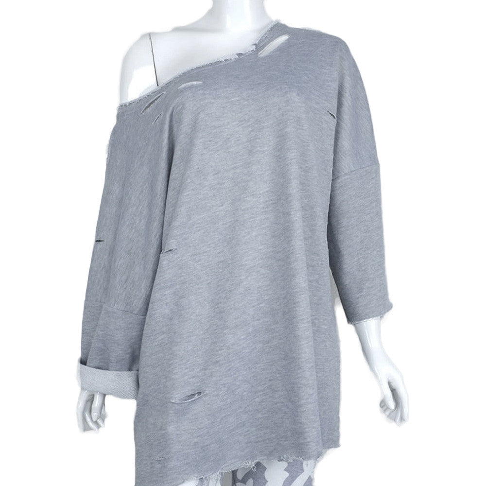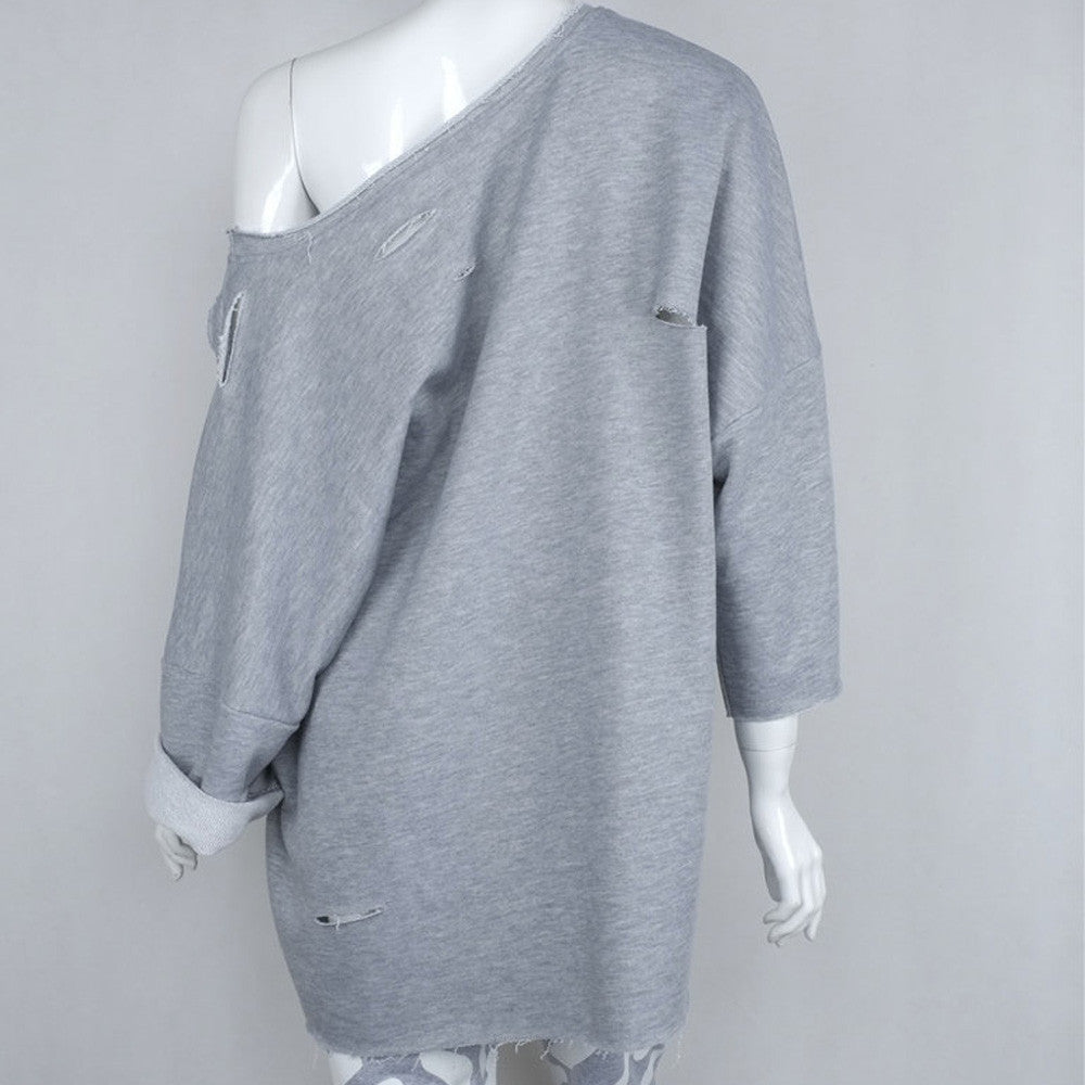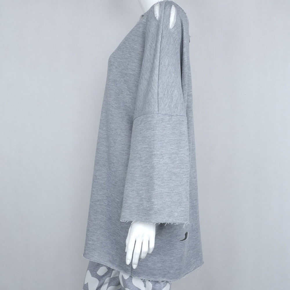 Street Womens Casual Sweatshirt Hole Long Sleeve Bat Sleeve Pullover Long Tops Shirt Hoodies camisas feminina IMY66