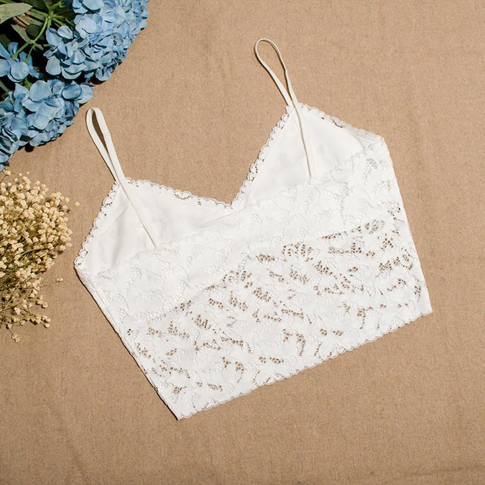 shirt female summer sexy lace tank top: lace bralette top short white