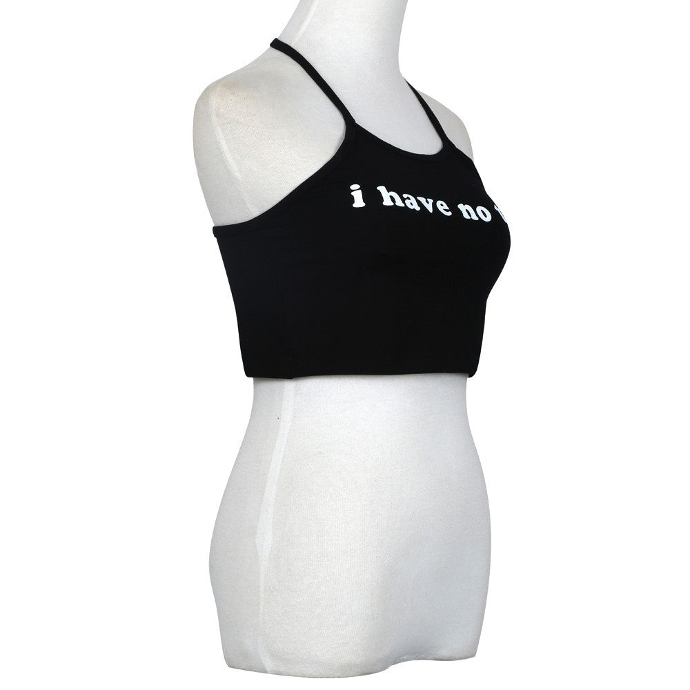 Style Sexy Crop Tops Women I HAVE NO TITS Letter Sleeveless Halterneck Tank Crop Tops Short Vest Blouse Tee Shirt IMY66