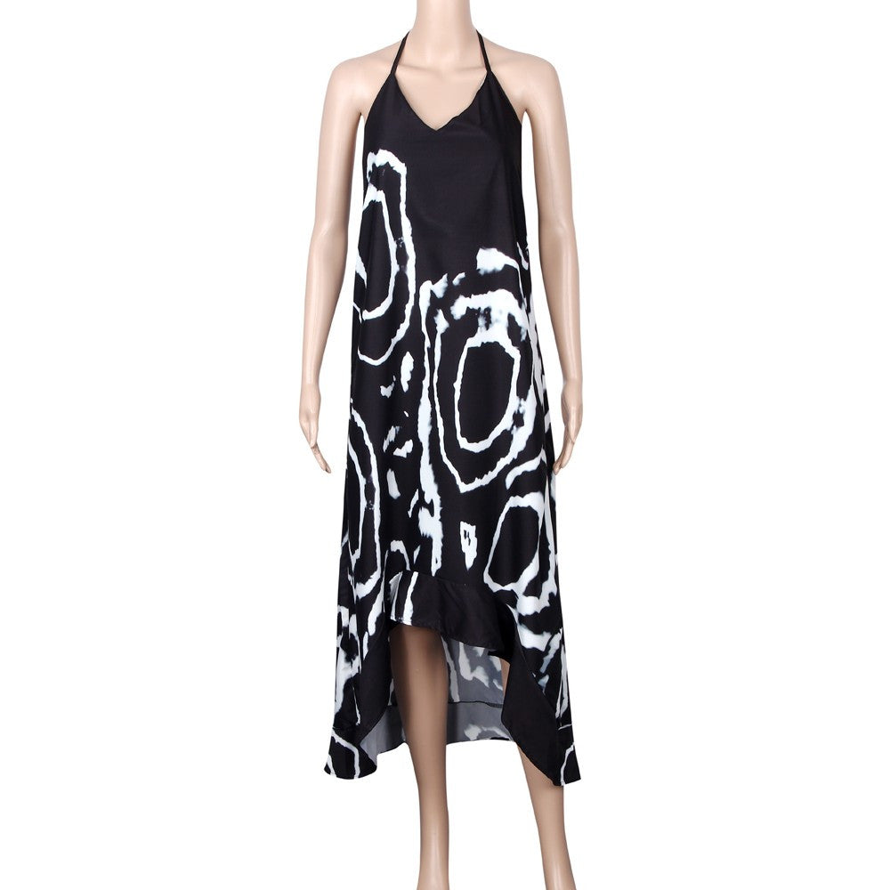 Style Women Long Dress Sexy Strap Backless Print Halter Sleeveless Party Beach Maxi Dress vestidos femininos IMY66
