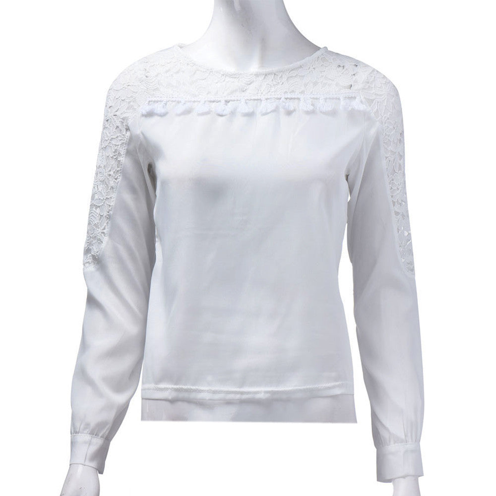 Style Women Long Sleeve Chiffon Blouse Lace White Women Blouses Tops Loose Casual Tops Shirt blusa IMY66
