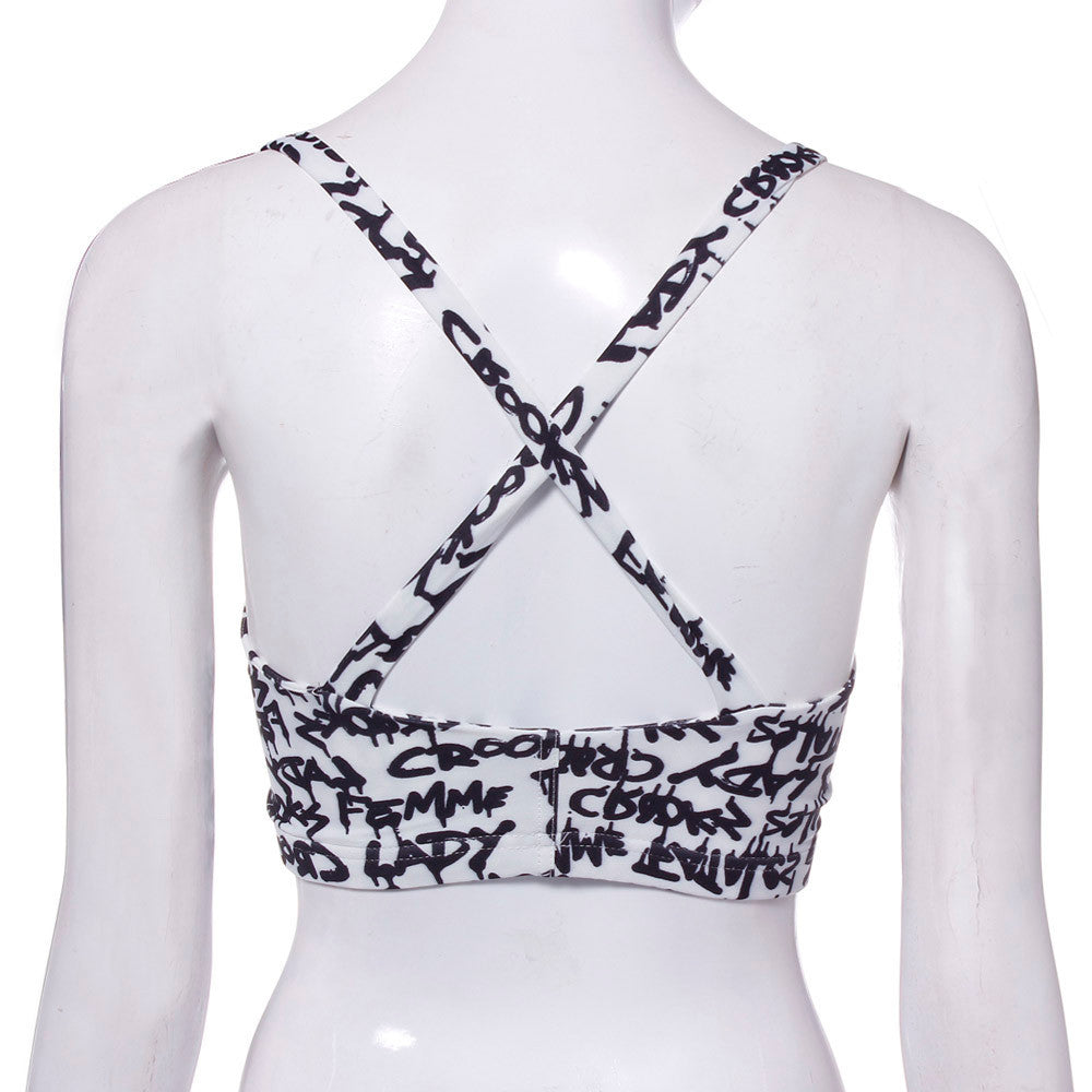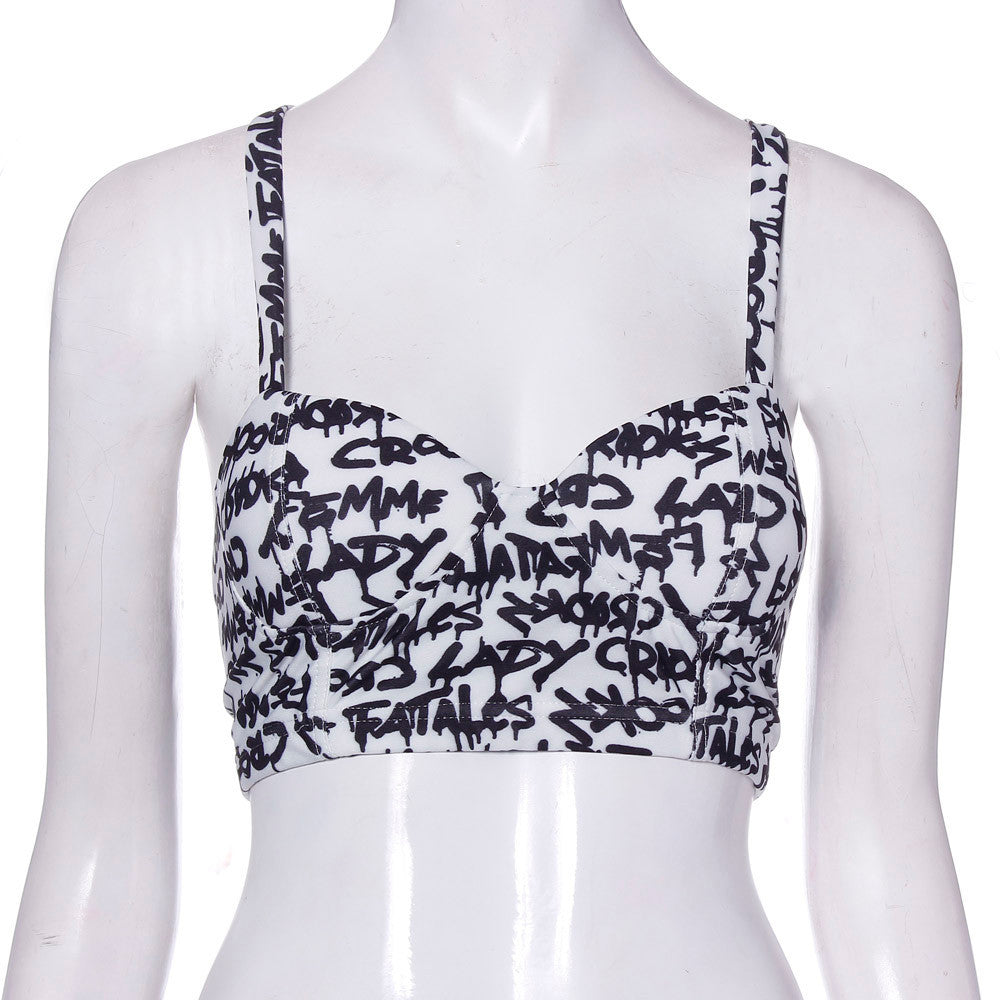 Style Women Sexy Backless Halter Letter Printed Tops Padded Strapless Crop Top Bra Cami Bralette Tank Tops Shirt IMY66